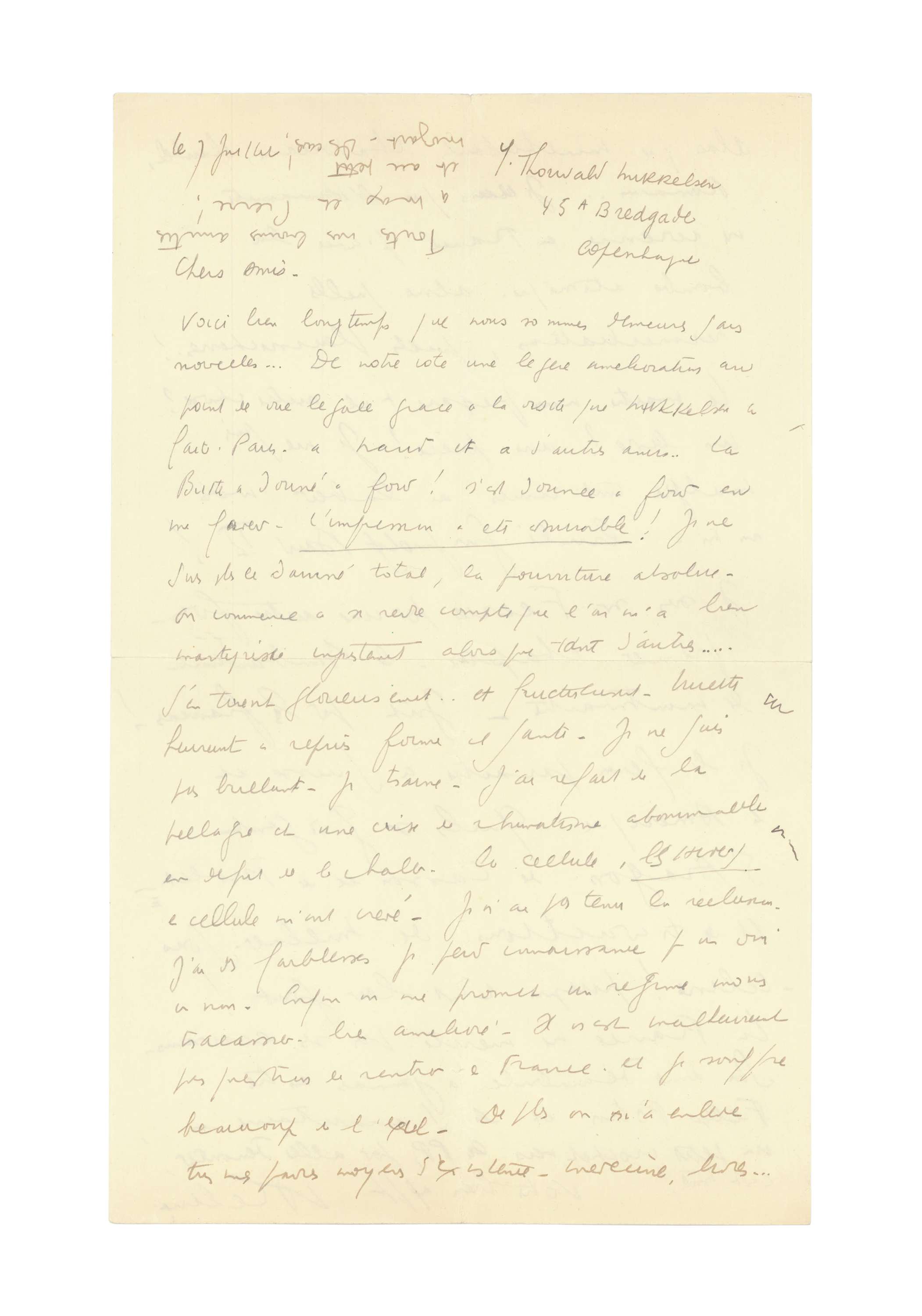 Copenhague, le 7 juillet [1947], (c/o Mikkelsen), 2 pages in-folio