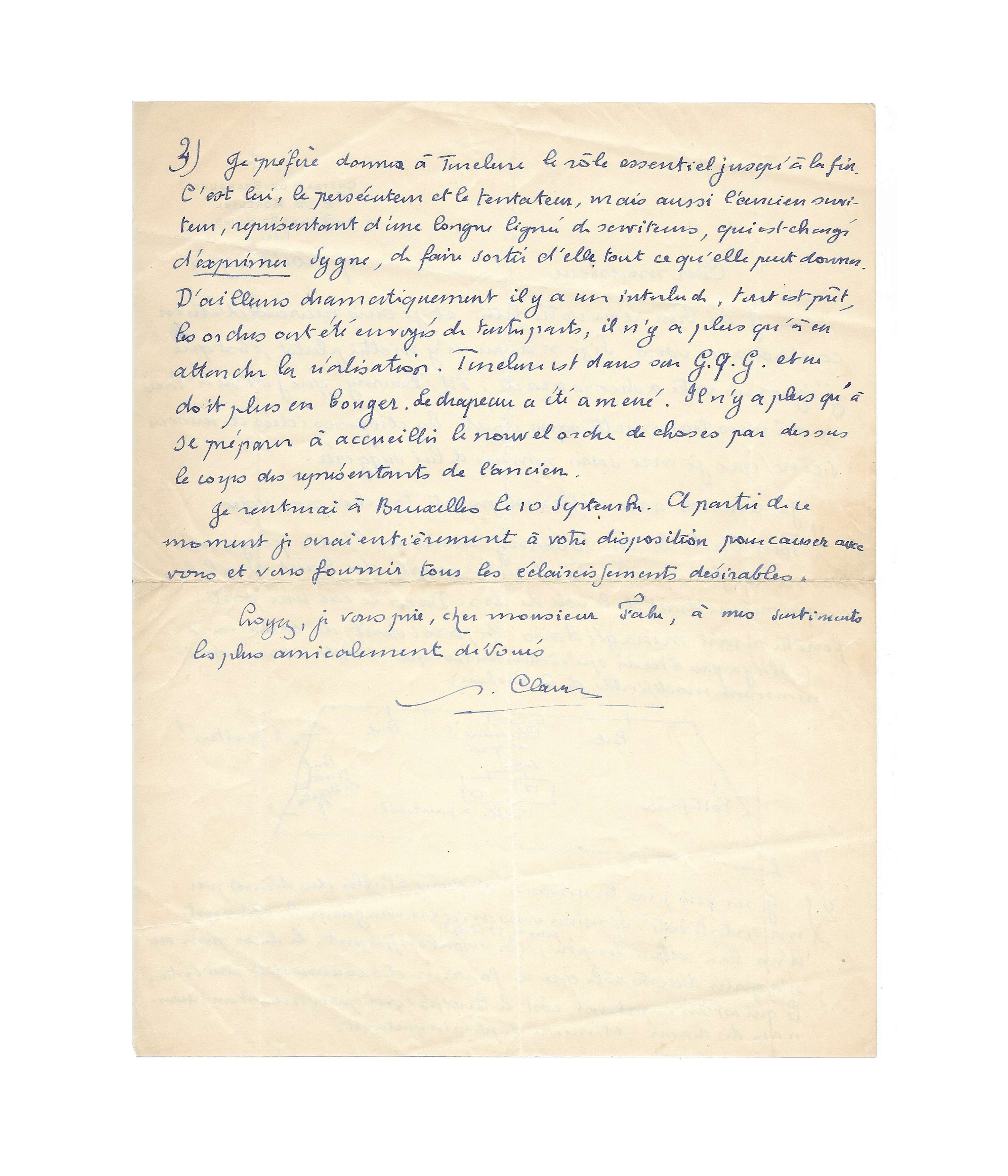 En tout cas tant cela me parait secondaire à côté des considérations essentielles que je viens de vous exposer et dont votre grande expérience du théâtre vous permet mieux qu’à moi-même encore de réaliser toute l’importance. […] Croyez, je vous prie, à mes sentiments les plus amicalement dévoués.