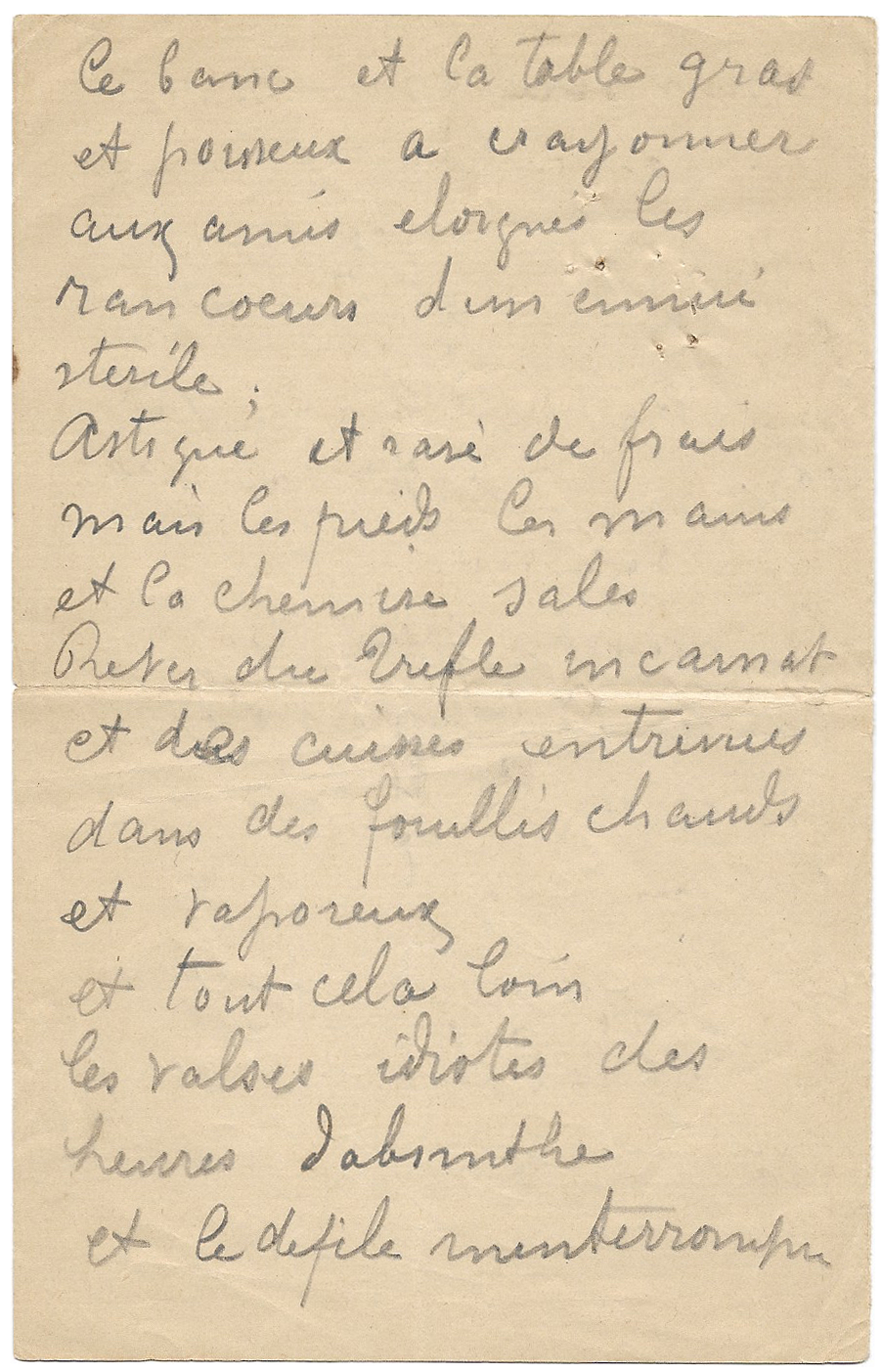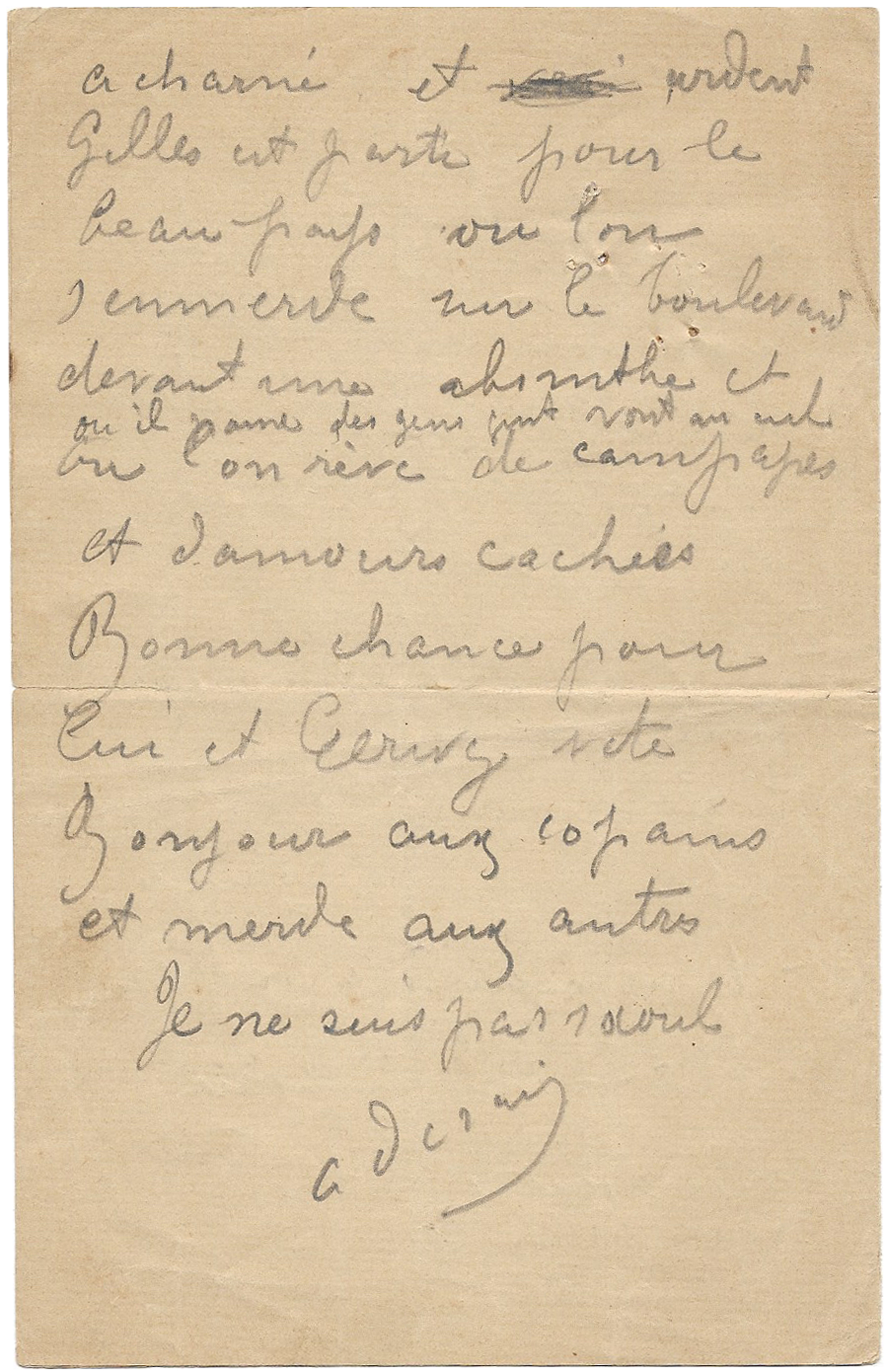 Manifestement désœuvré pendant sa mobilisation, Derain aurait sans doute noyé son ennui dans la fée verte au moment d’écrire cette lettre, et ce malgré ses dénégations.