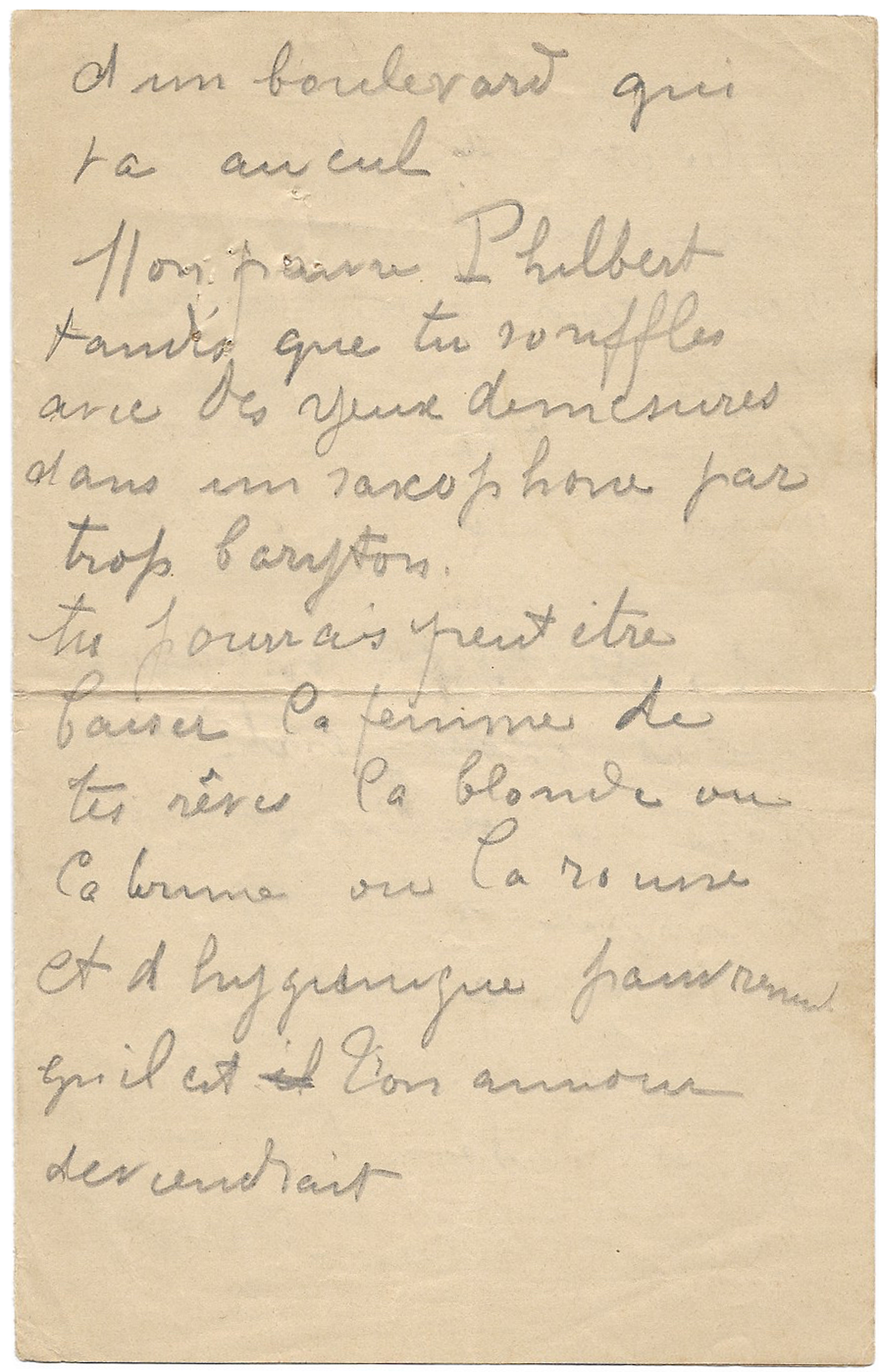 Incroyable lettre d’André Derain, d’un ton tout à fait délirant et scabreux, écrite durant son service militaire, et que l’on imagine sous l’emprise de substances illicites