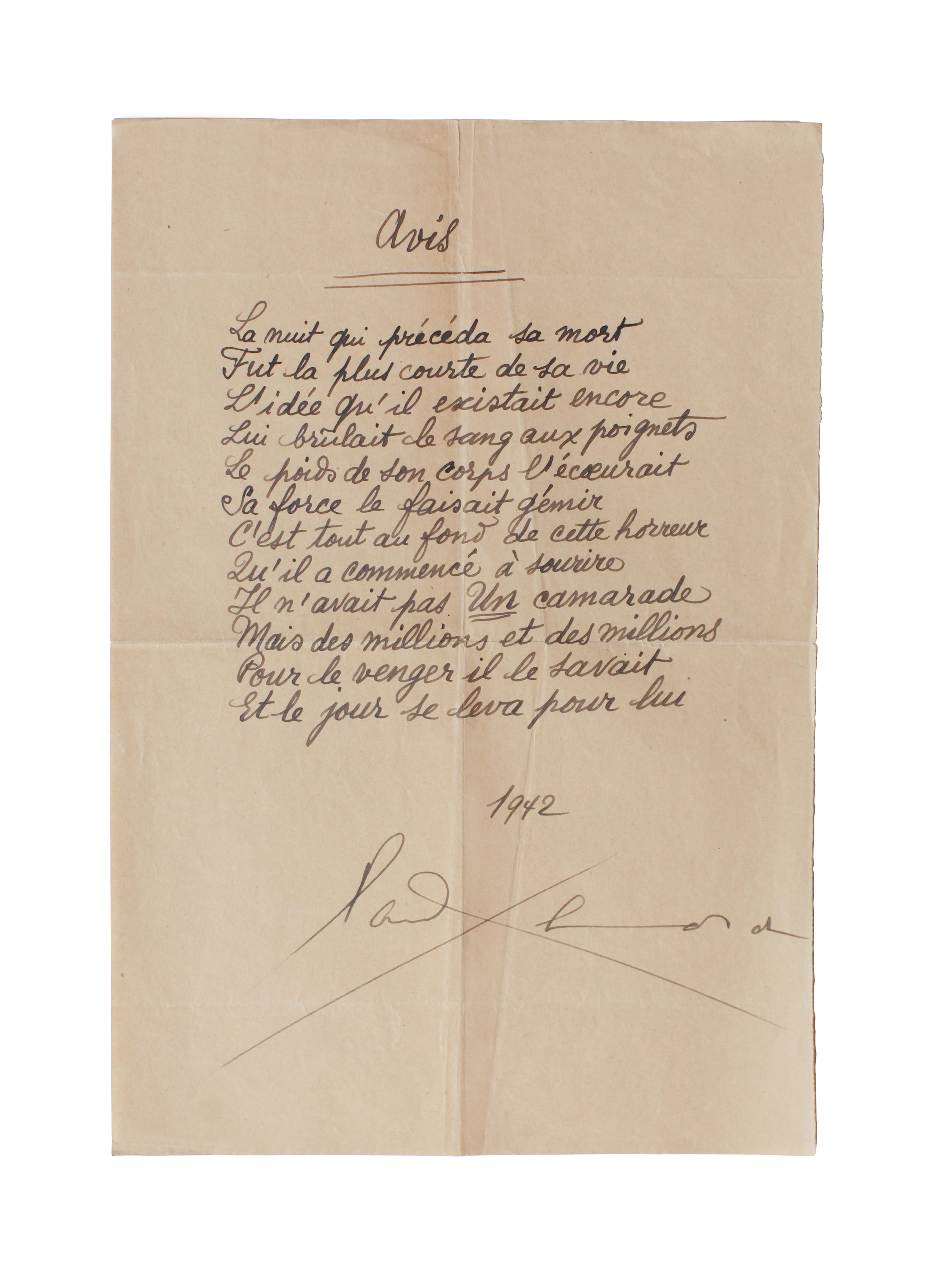 Magnifique poème ouvrant le recueil Au rendez-vous allemand et symbolisant à lui seul l’esprit de la Résistance