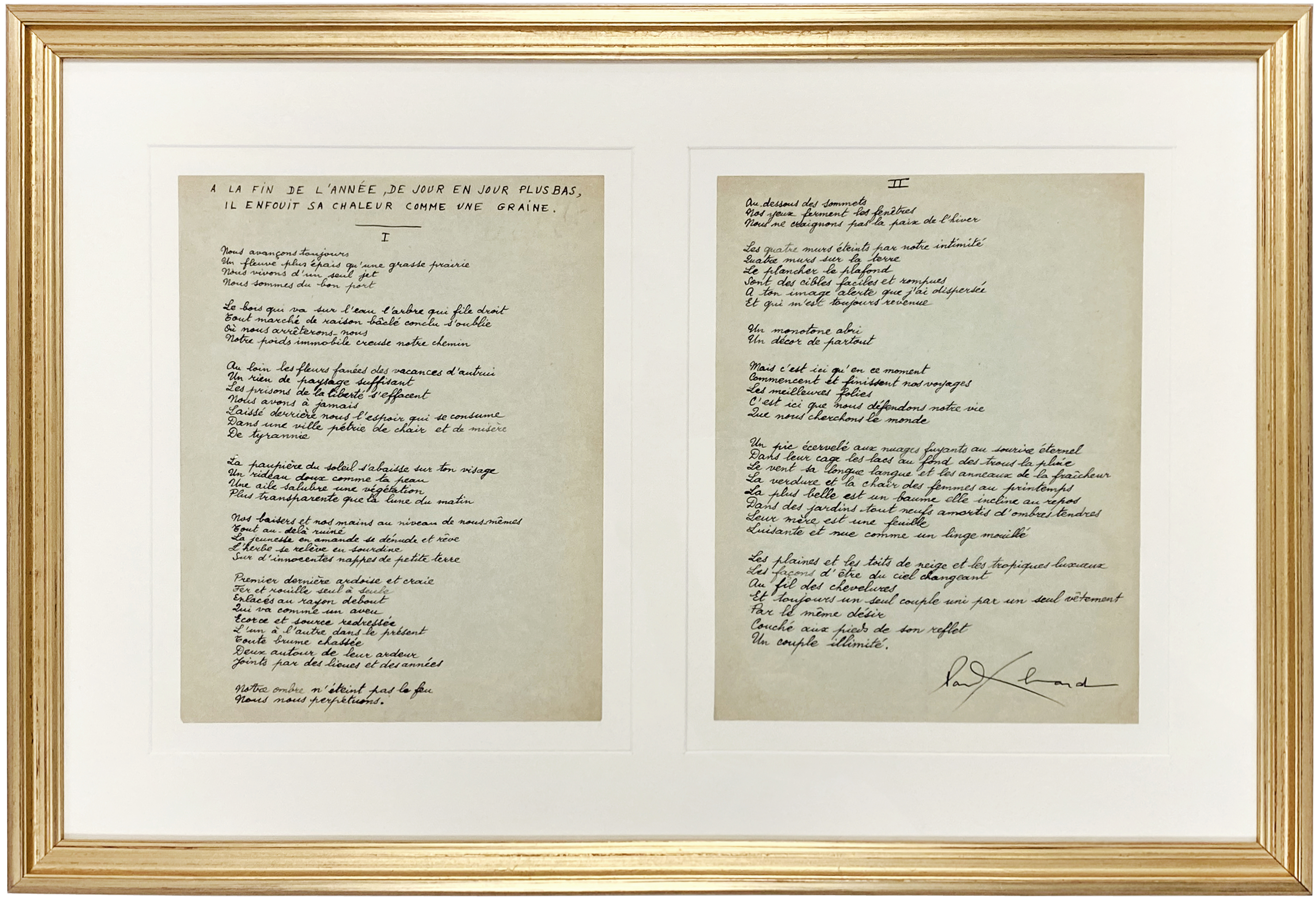 Les poèmes manuscrits de ce recueil, l’un des plus emblématiques du poète, sont fort rares.