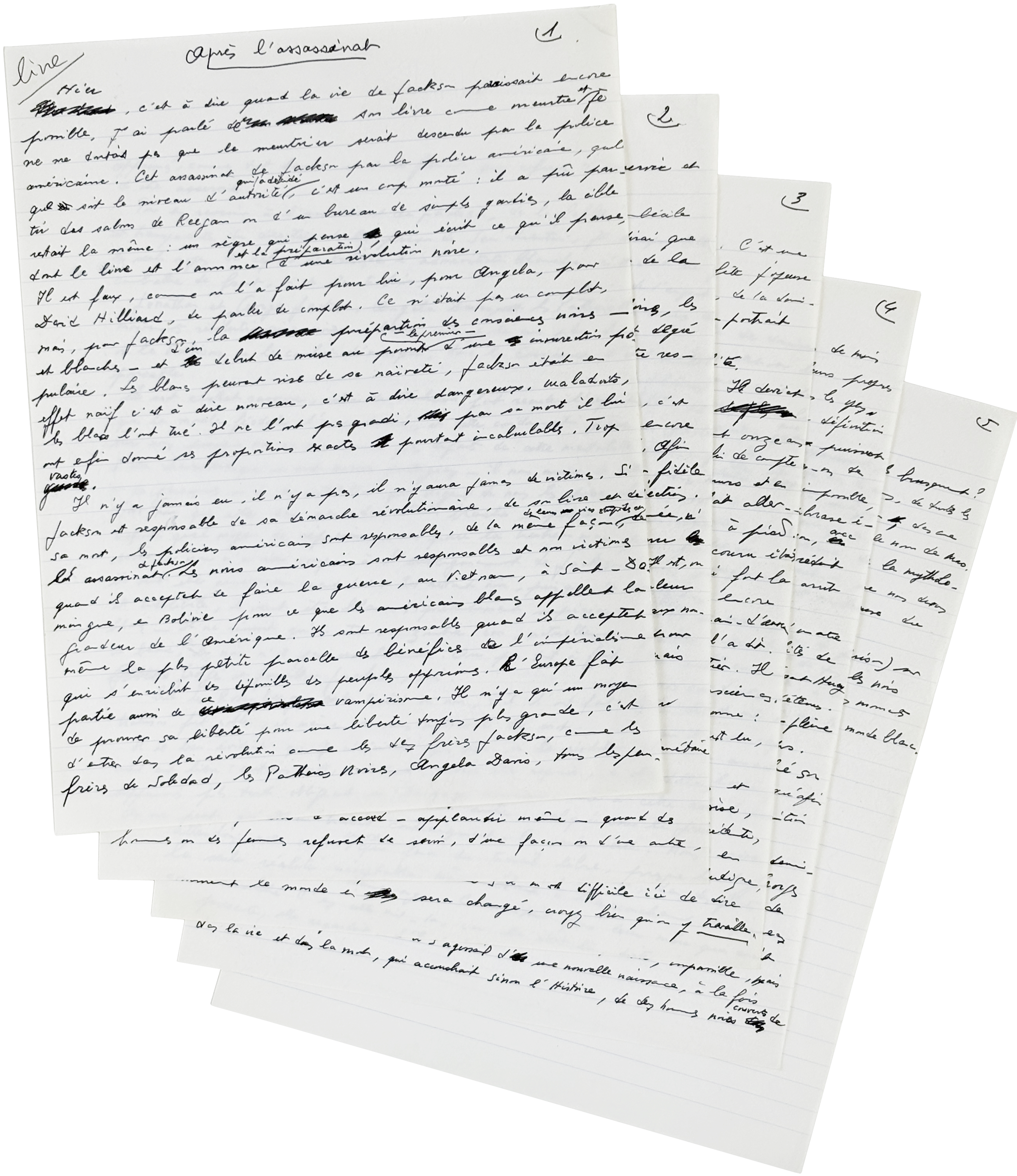 Manuscrit complet et de premier jet en réaction au meurtre de George Jackson