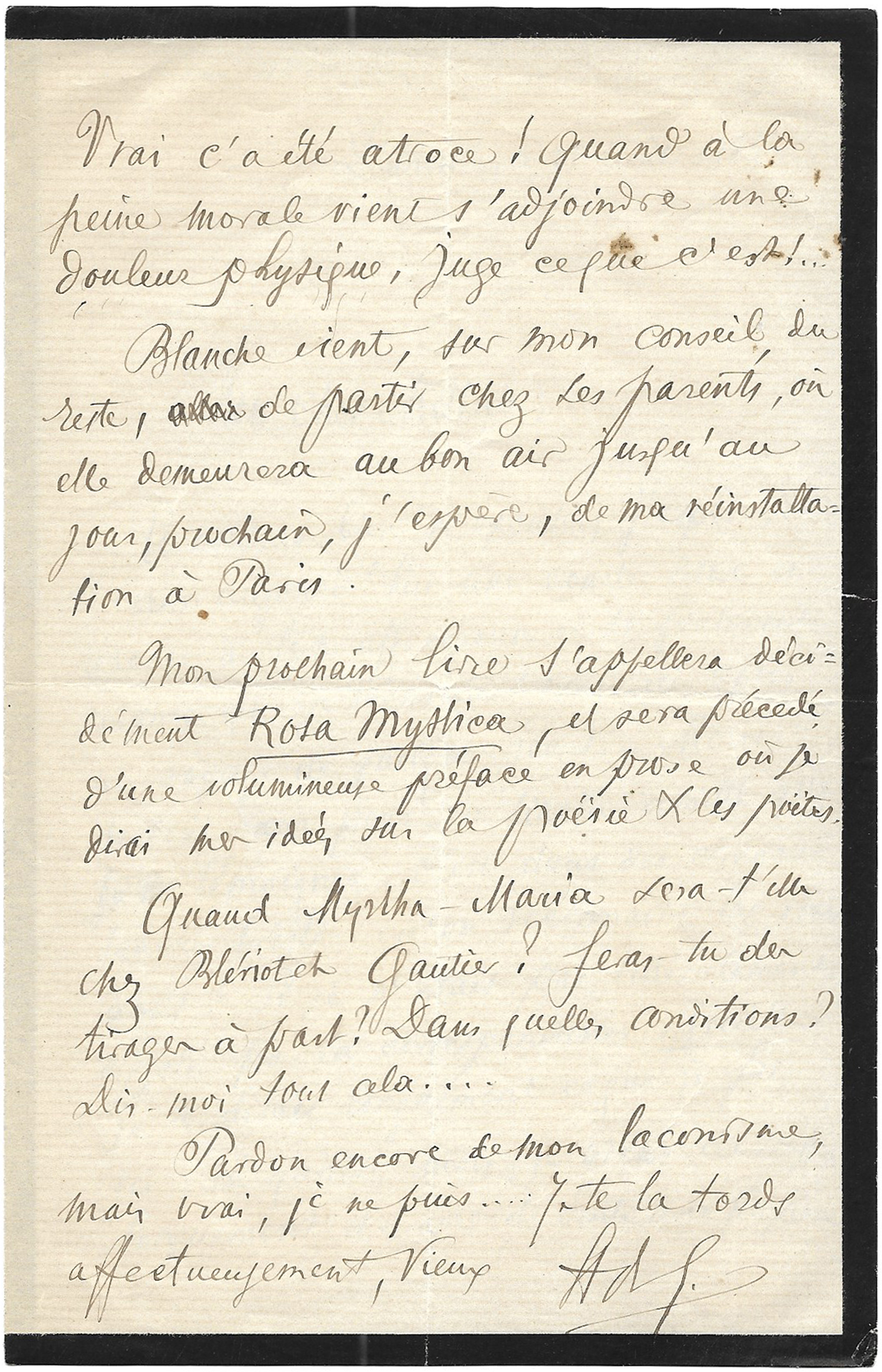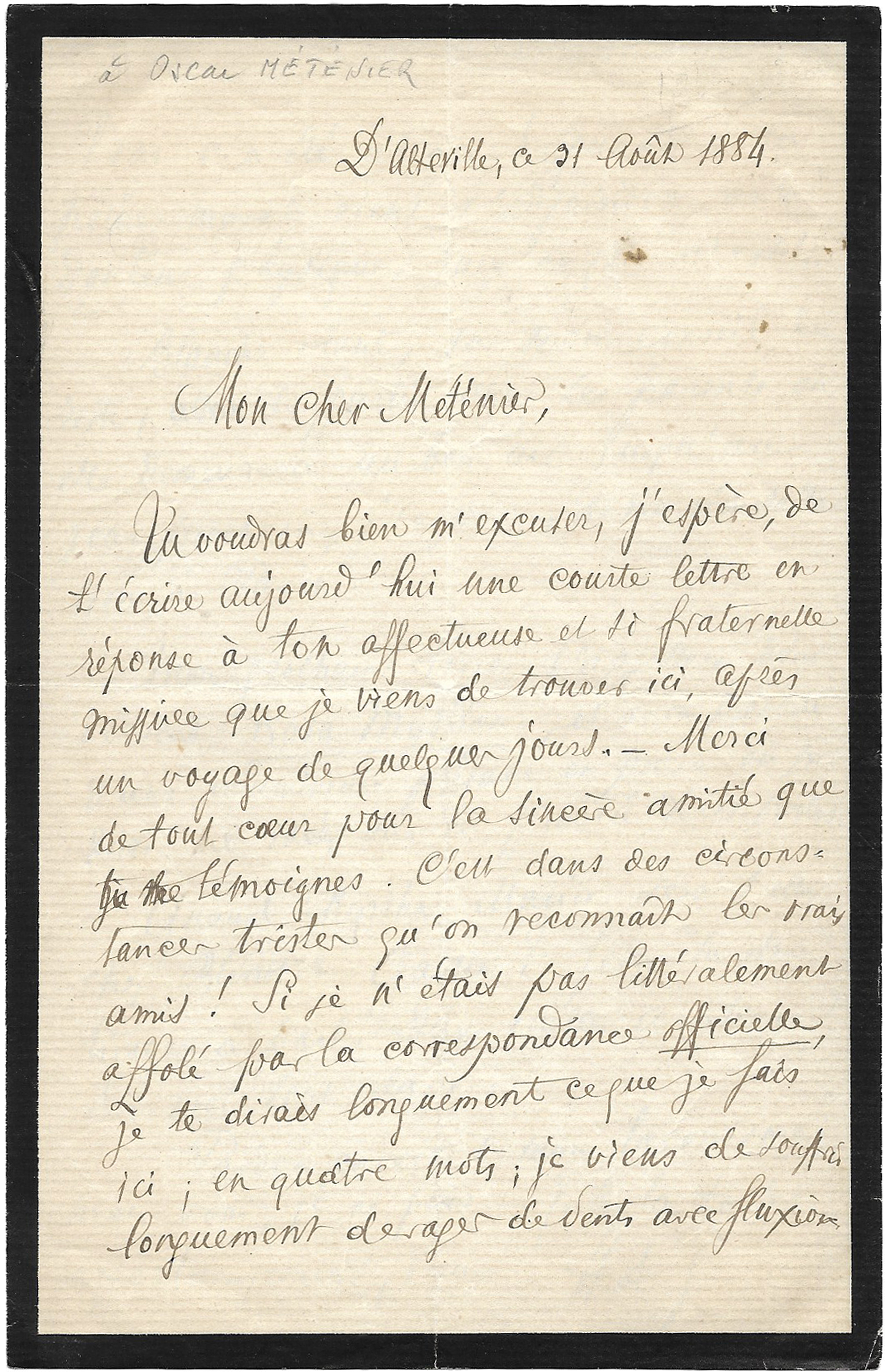 Sur papier vergé, liseré de deuil