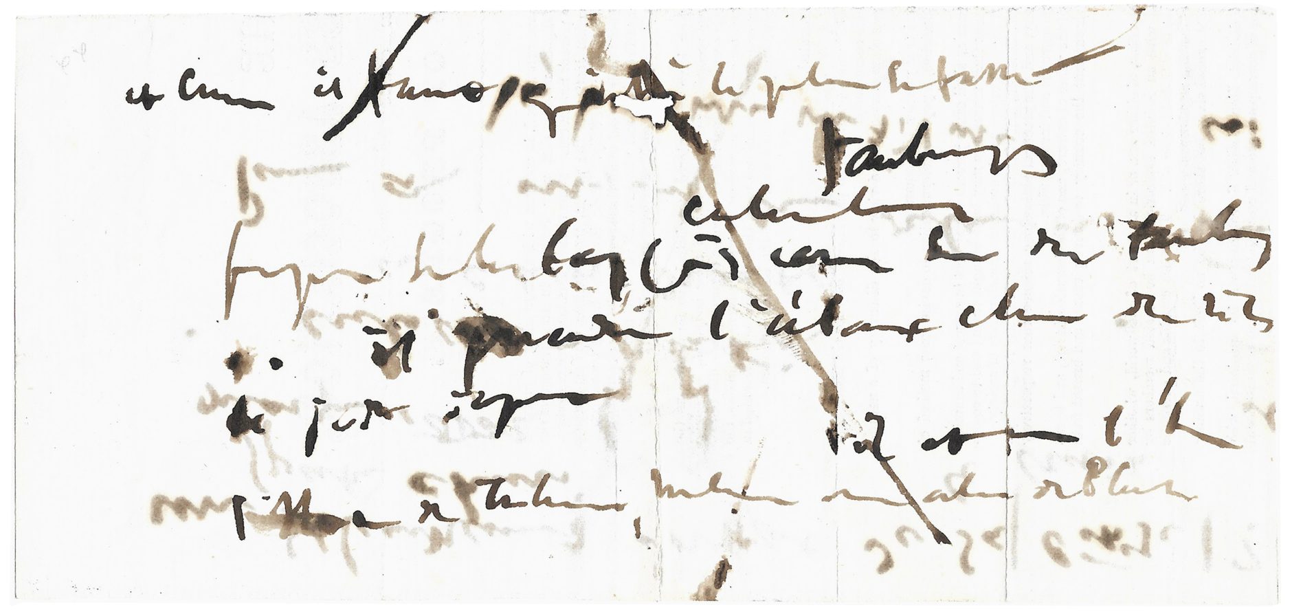 Victor Hugo a tourné autour de ces vers assassins, cherchant des formules imagées, dont il a porté les premières ébauches sur un bulletin d’adhésion à une société anglaise pour le progrès social. Par exemple, au recto de ce bulletin, on retrouve un vers original, non conservé dans sa forme et ponctué d’un point d’interrogation :
