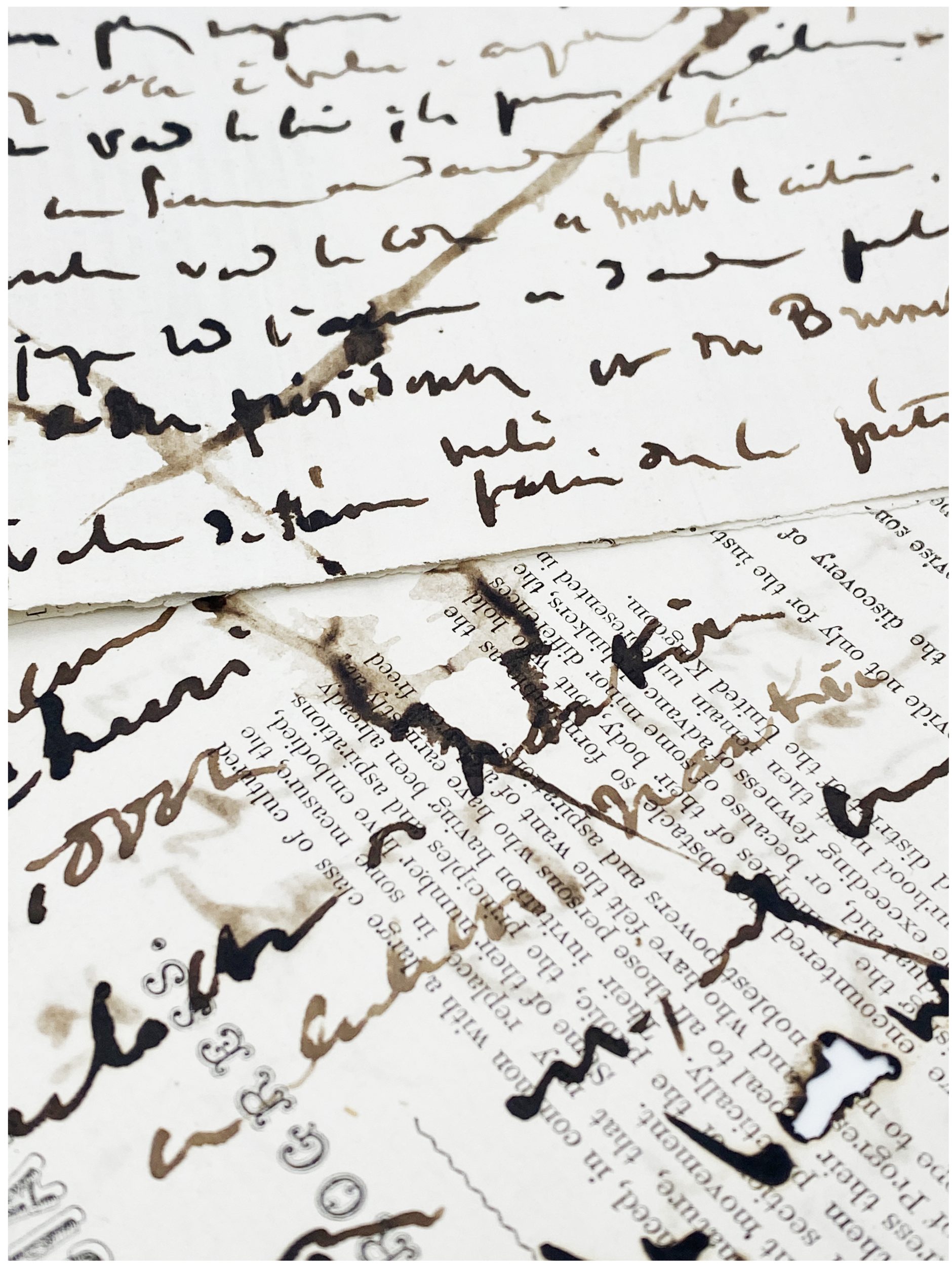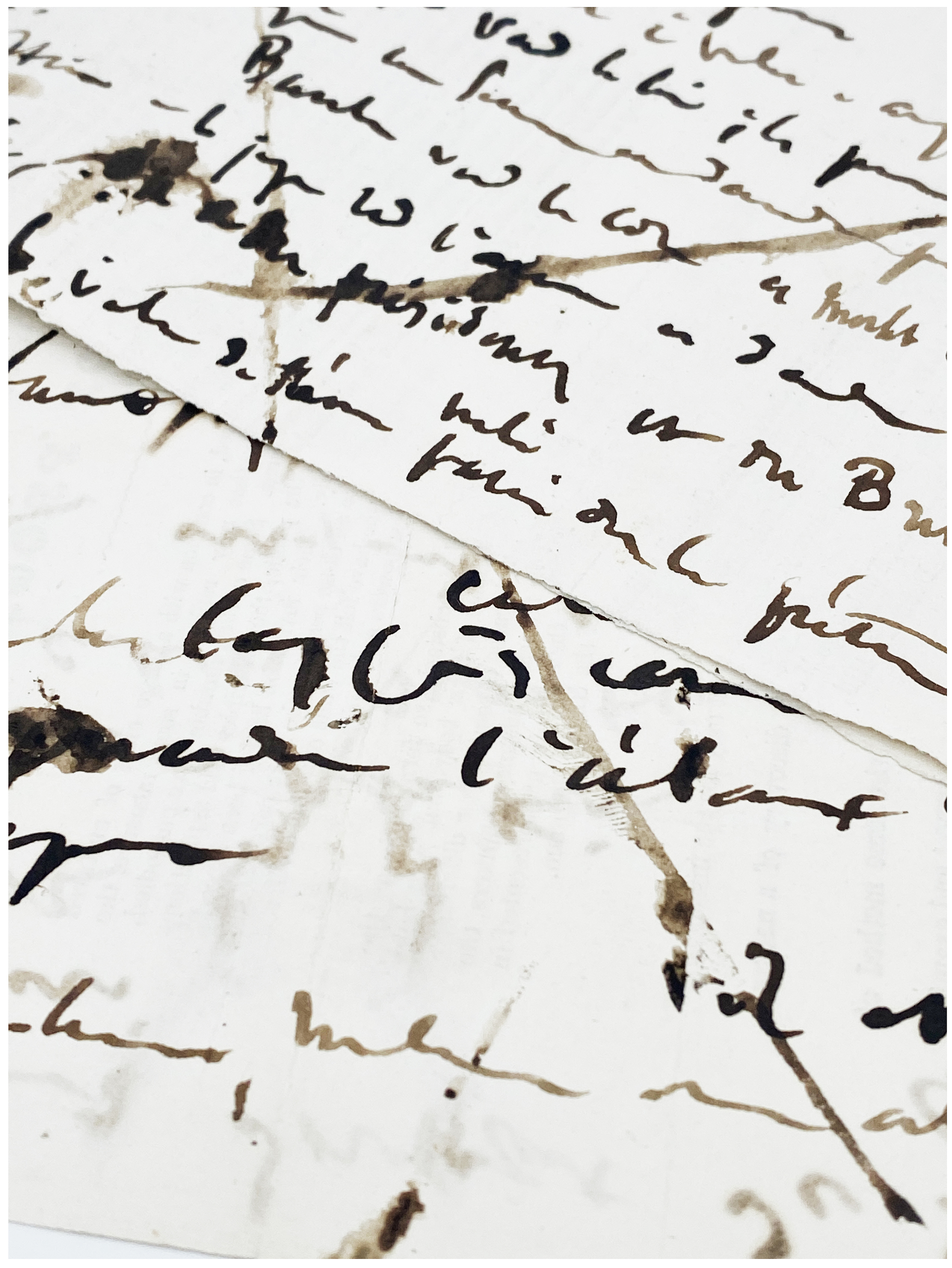 Environ 25 vers jetés sur 2 bandes de papier (10 x 21,5 et 10 x 33 cm)