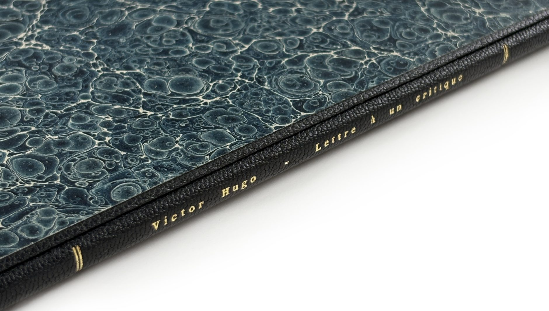 Sous chemise-étui à la bradel, demi chagrin bleu, dos lisse fileté, titre doré, date en queue