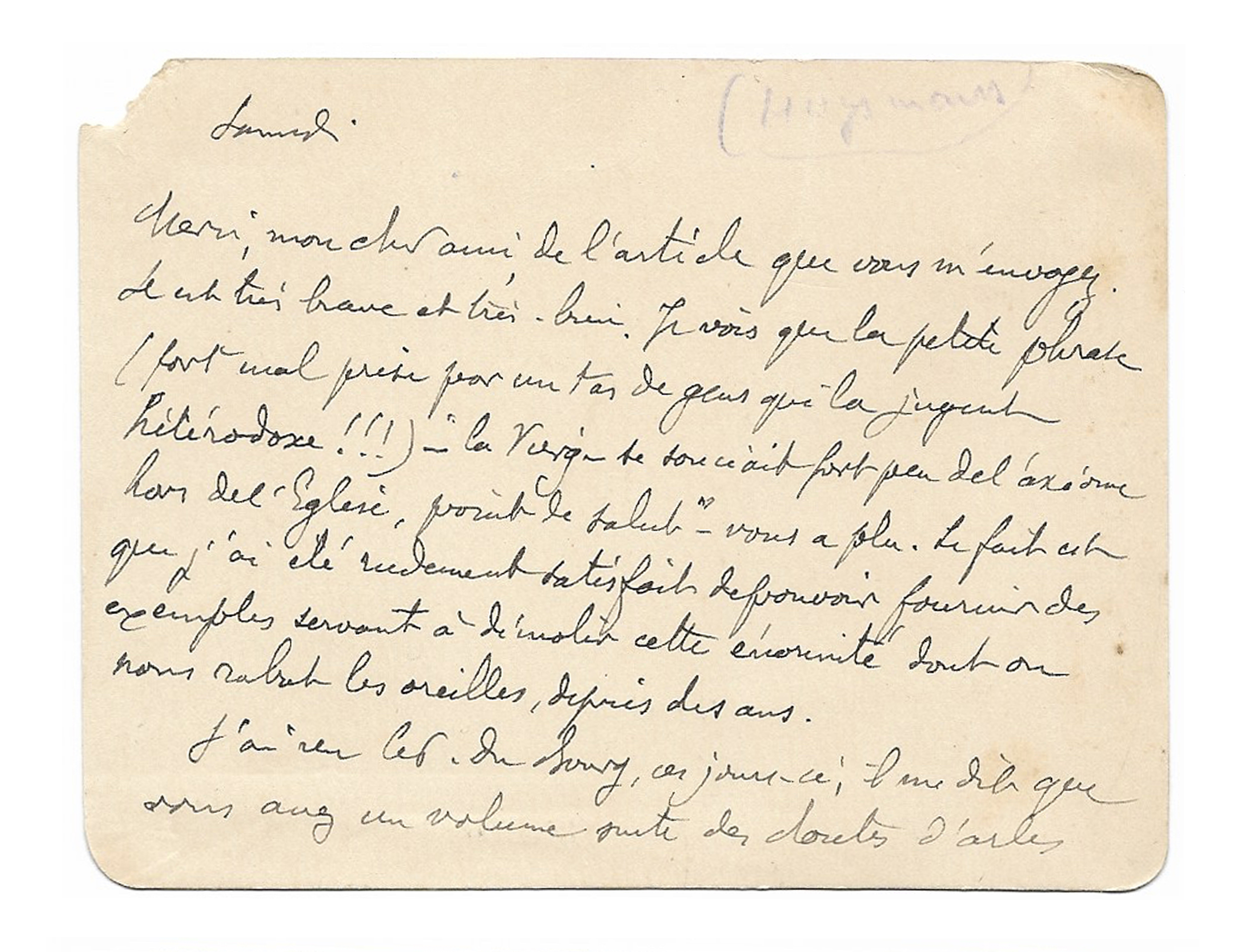 Carte autographe signée « GHuÿsmans » [à André Godard]