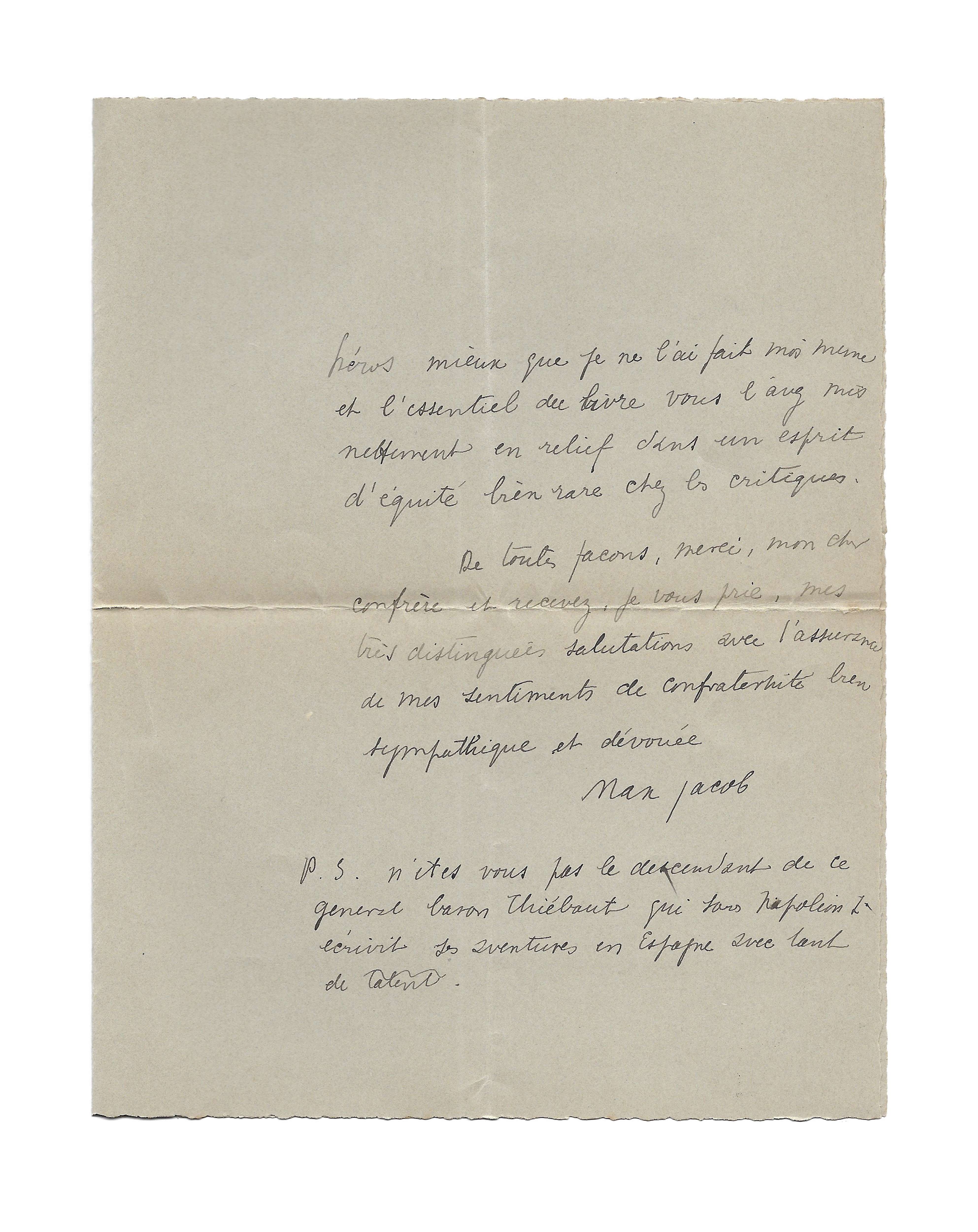 Lettre autographe signée « Max Jacob » à Marcel Thiébaut