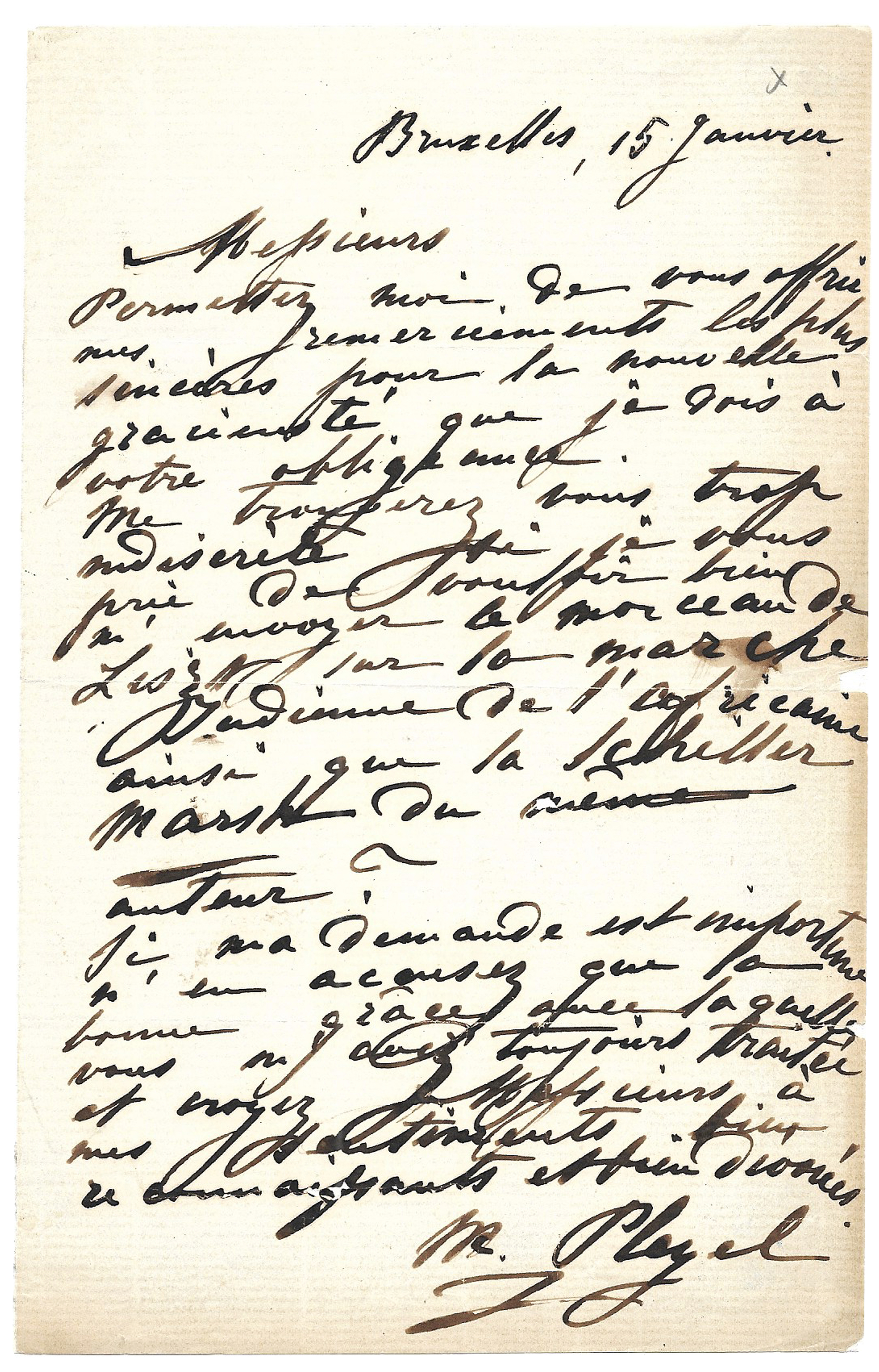 Lettre autographe signée « M. Pleyel » [à Louis Brandus ?]