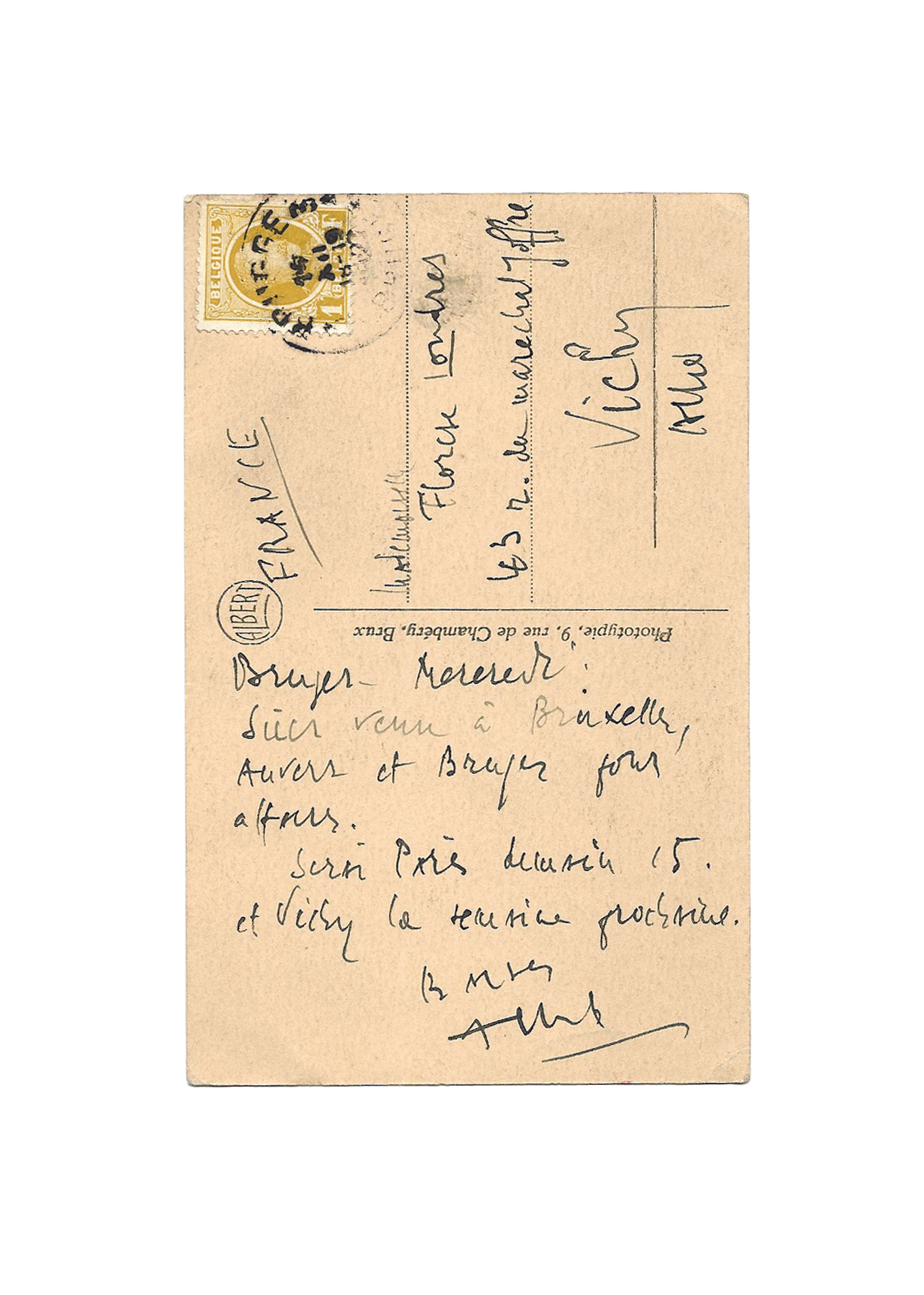 Le journaliste voyageur informe sa fille de son séjour en Belgique et lui donne rendez-vous la semaine suivante à Vichy