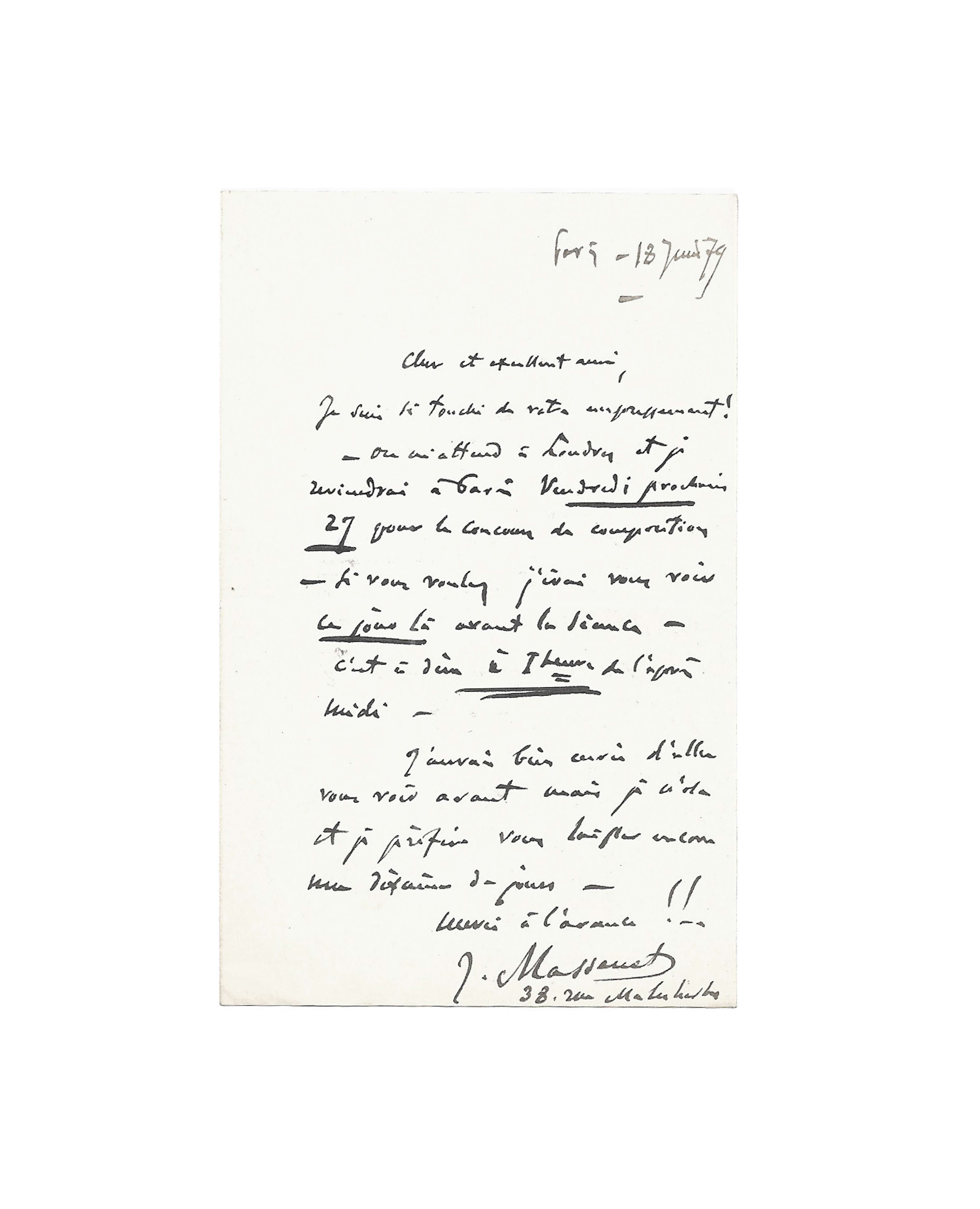 Massenet doit se rendre à Londres mais promet de revenir à temps pour le concours de composition à Paris