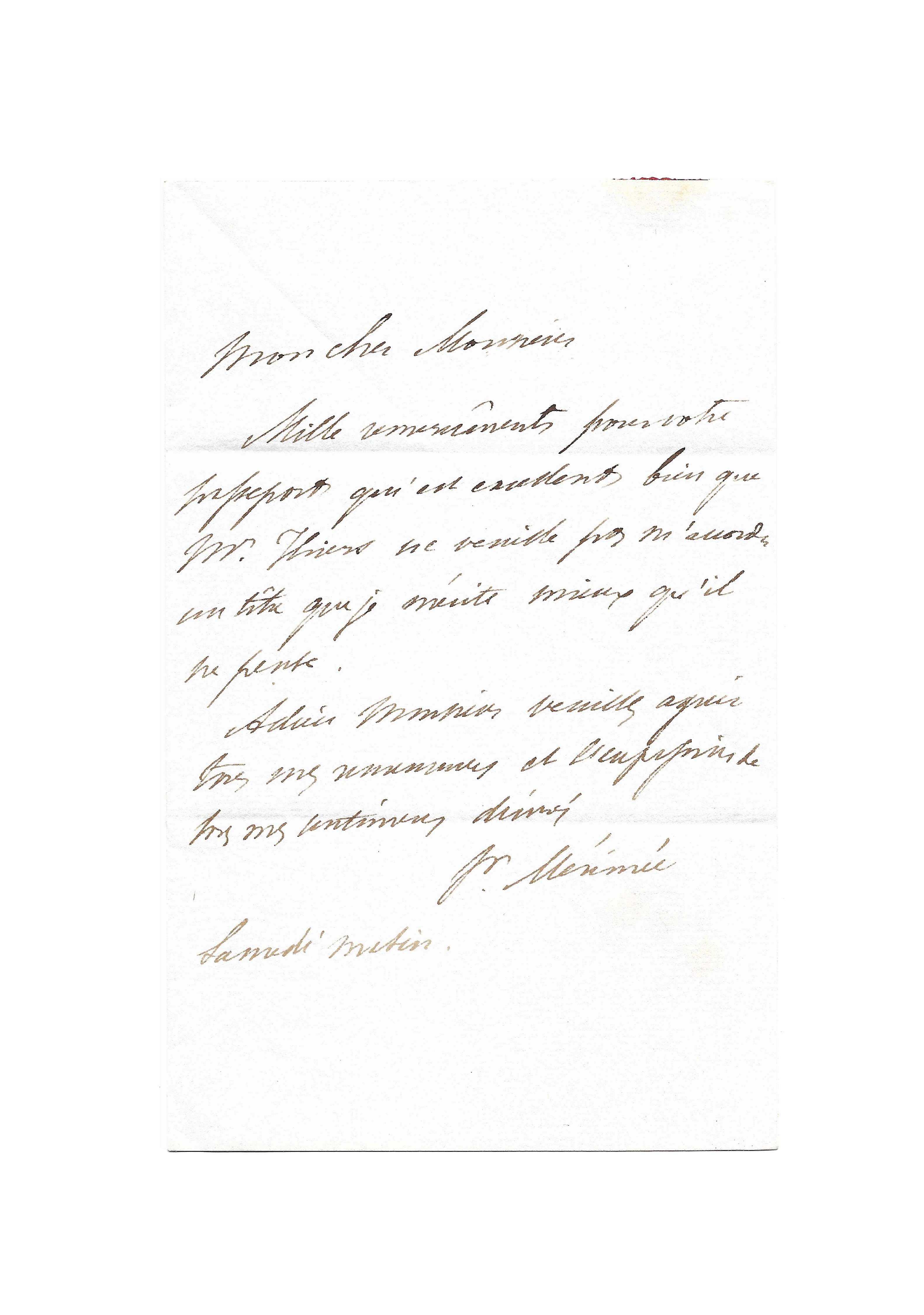 Deux lettres autographes signées « Pr Mérimée » à Auguste Martin