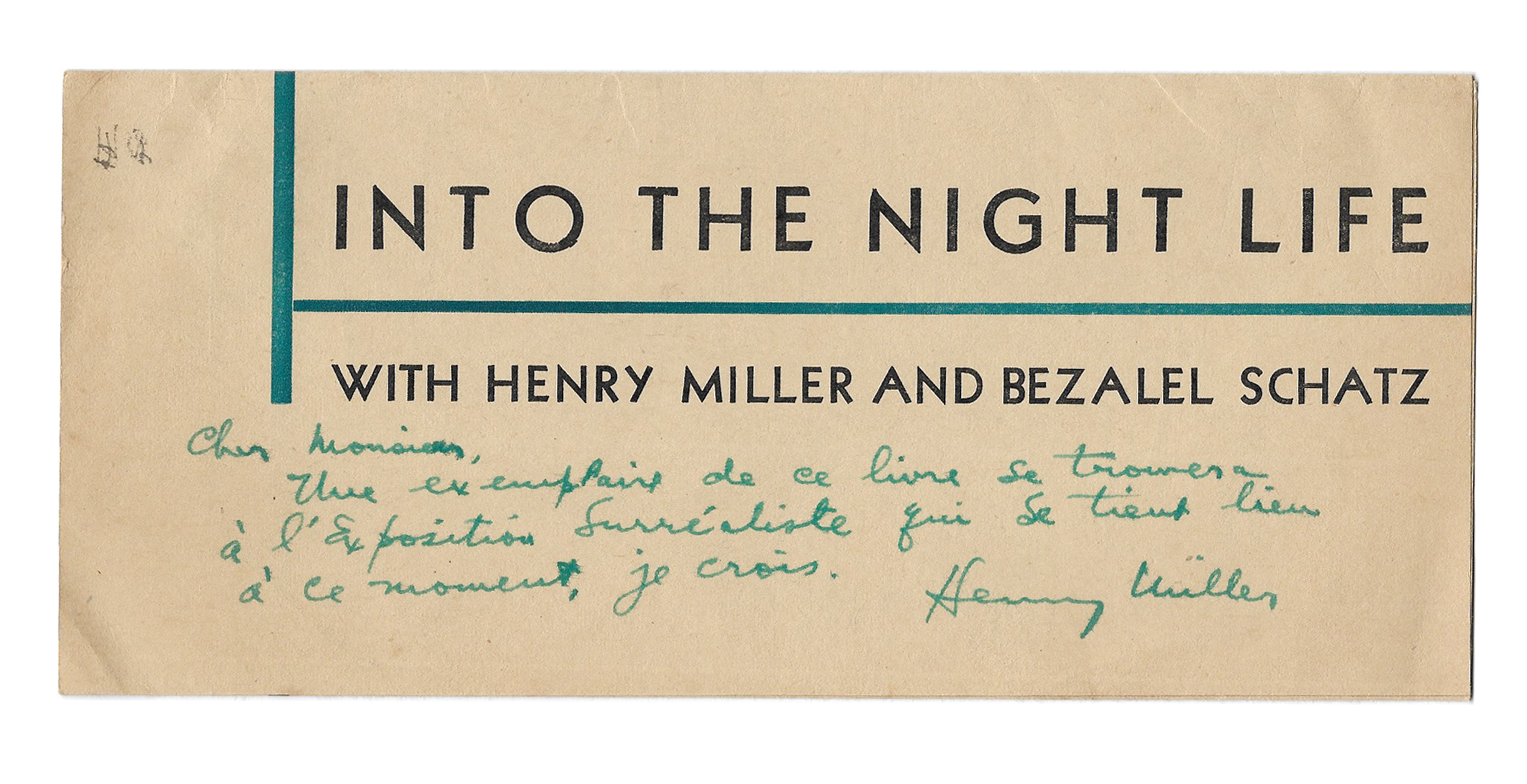 Miller convie son correspondant à récupérer un exemplaire de son dernier ouvrage Into the night life à l’Exposition Surréaliste