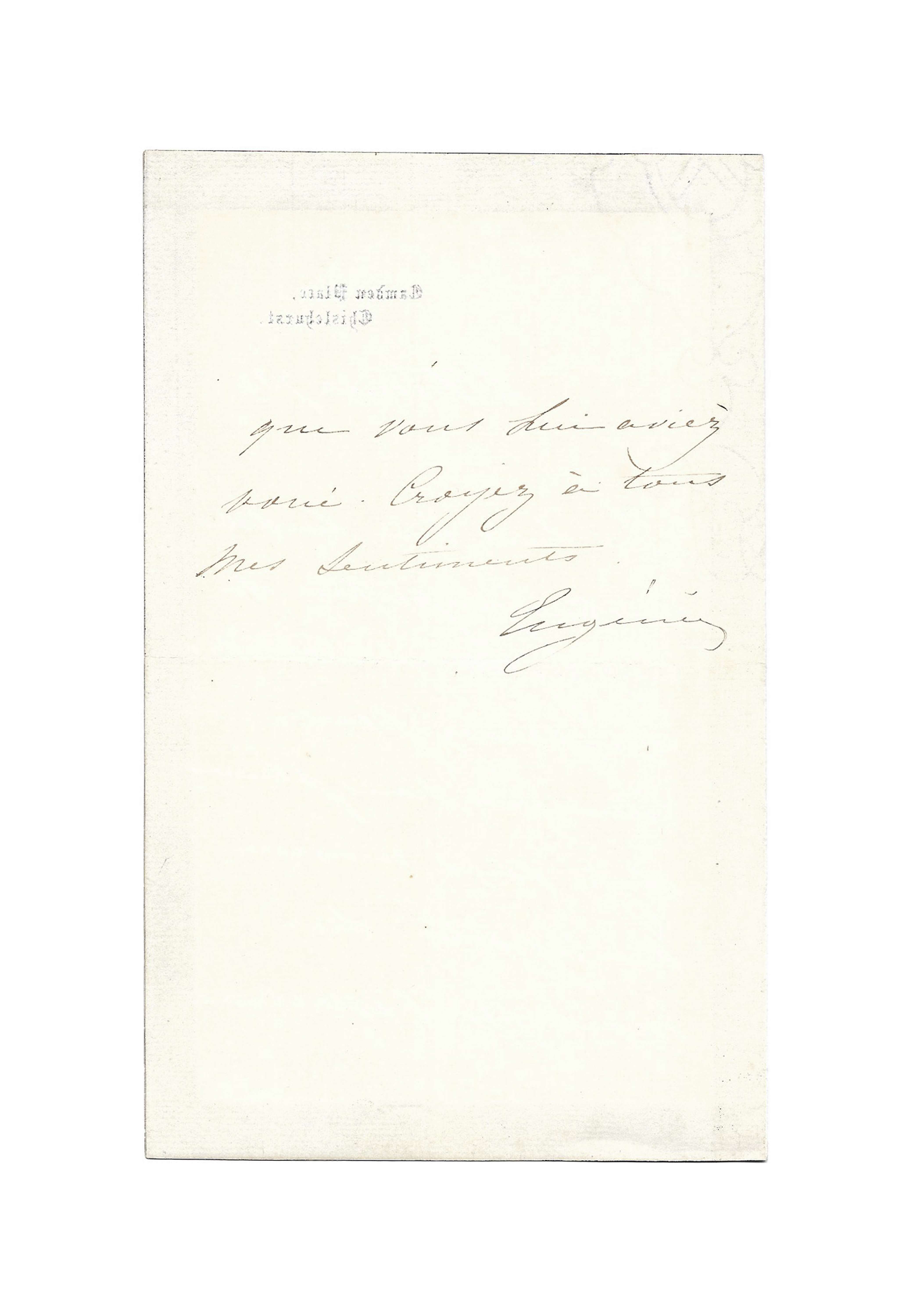 Lettre autographe signée « Eugénie » à un destinataire inconnu