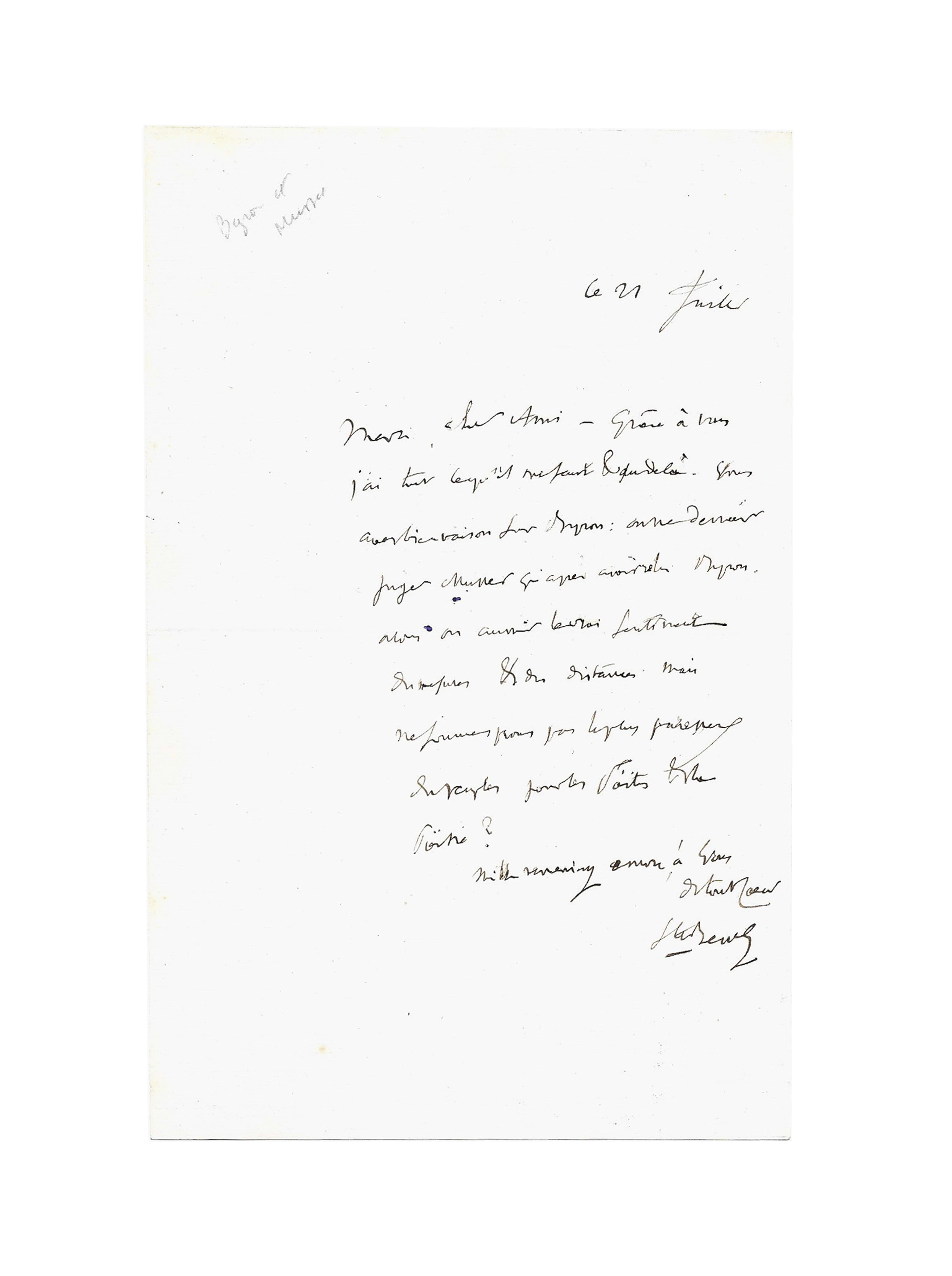 S.l.n.d, « ce 21 juillet », 1 p. in-8° sur papier crème
