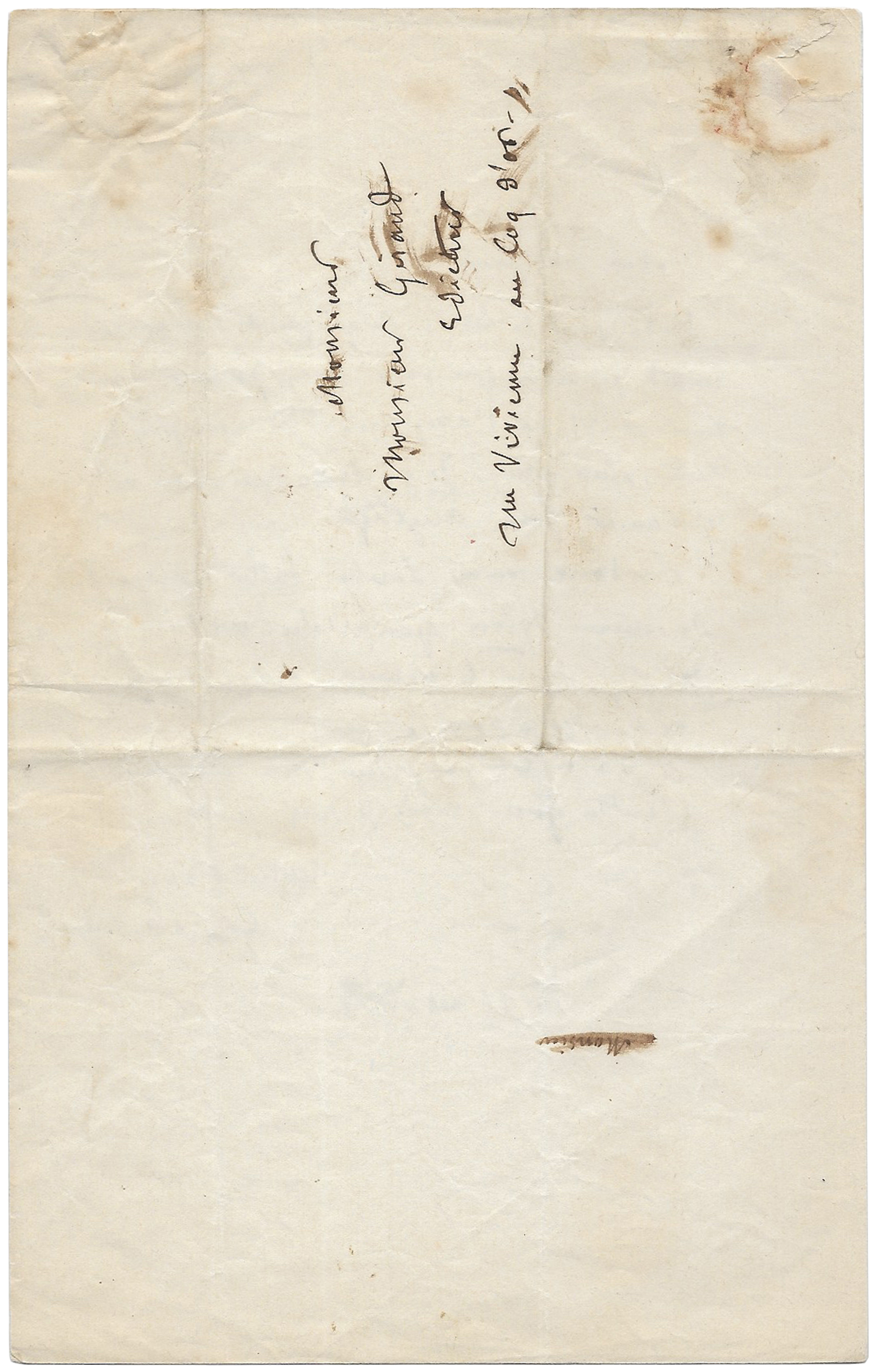Adresse autographe : « Monsieur / Monsieur Giraud / Éditeur / rue Vivienne au Coq d’or »