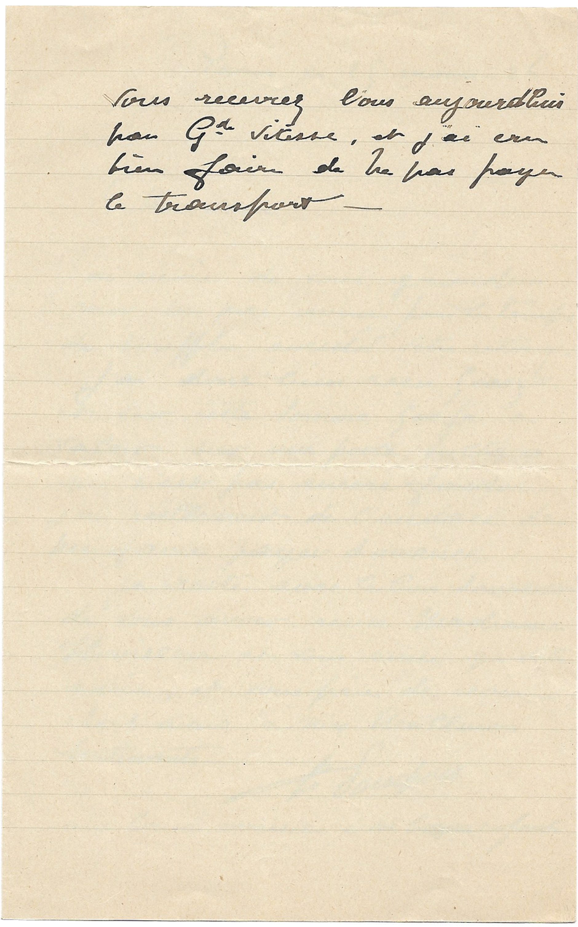 Vous recevrez l’ou[r]s aujourd’hui par G[ran]de vitesse, et j’ai cru bien faire ne pas payer le transport. –  »