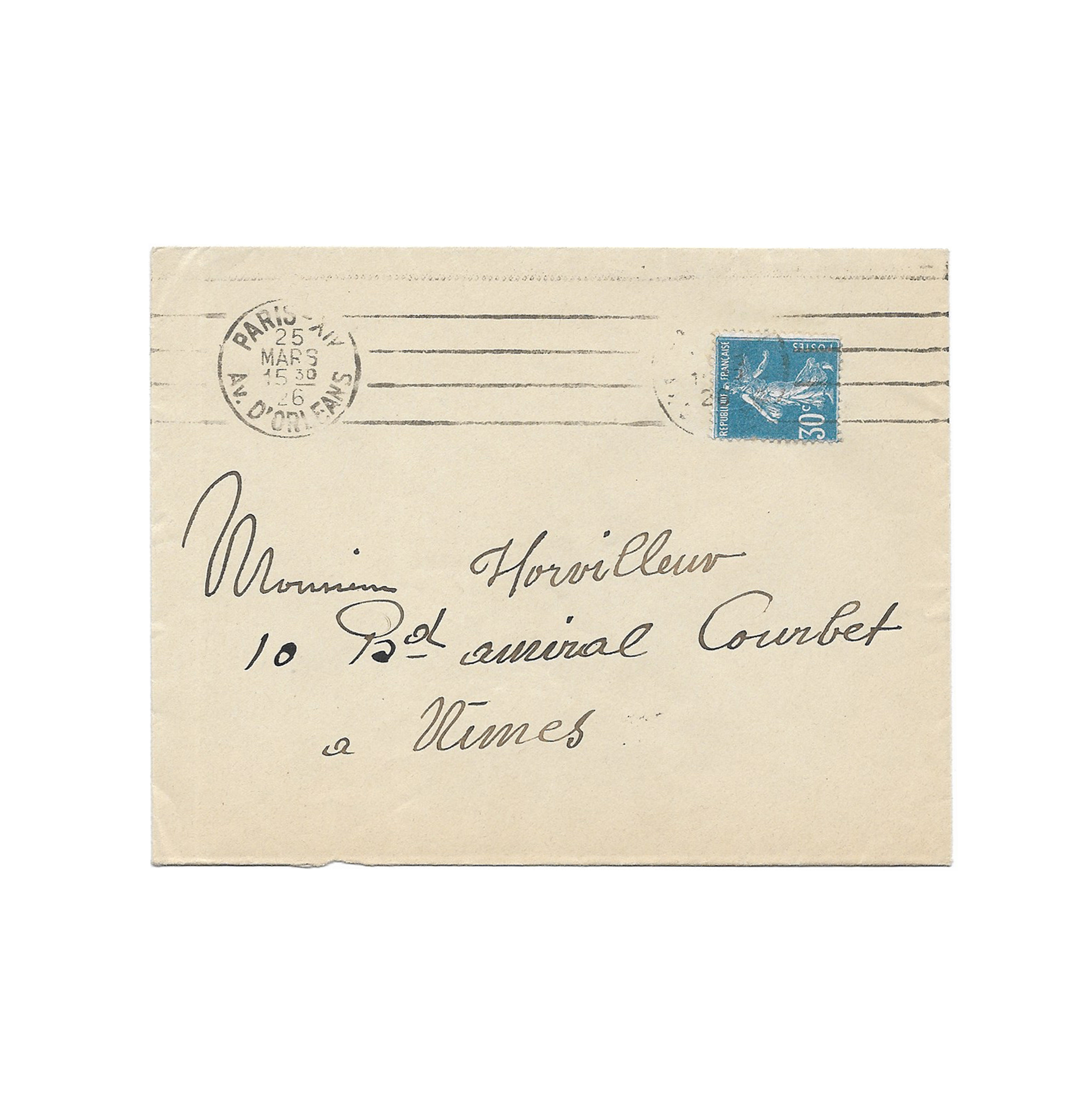 Enveloppe autographe jointe, timbrée et oblitérée