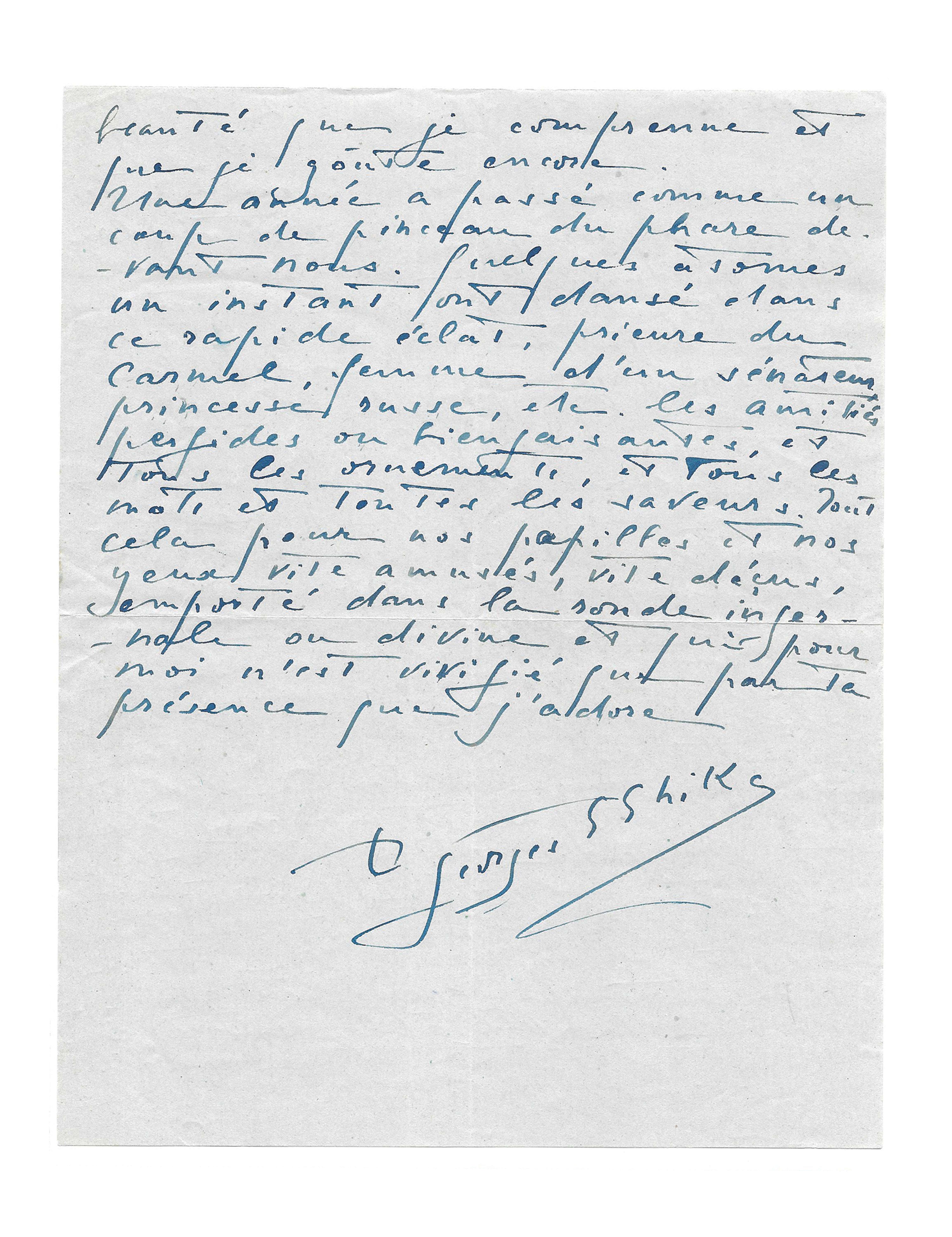 Lettre autographe signée « Georges Ghika » à Liane de Pougy, princesse Ghika