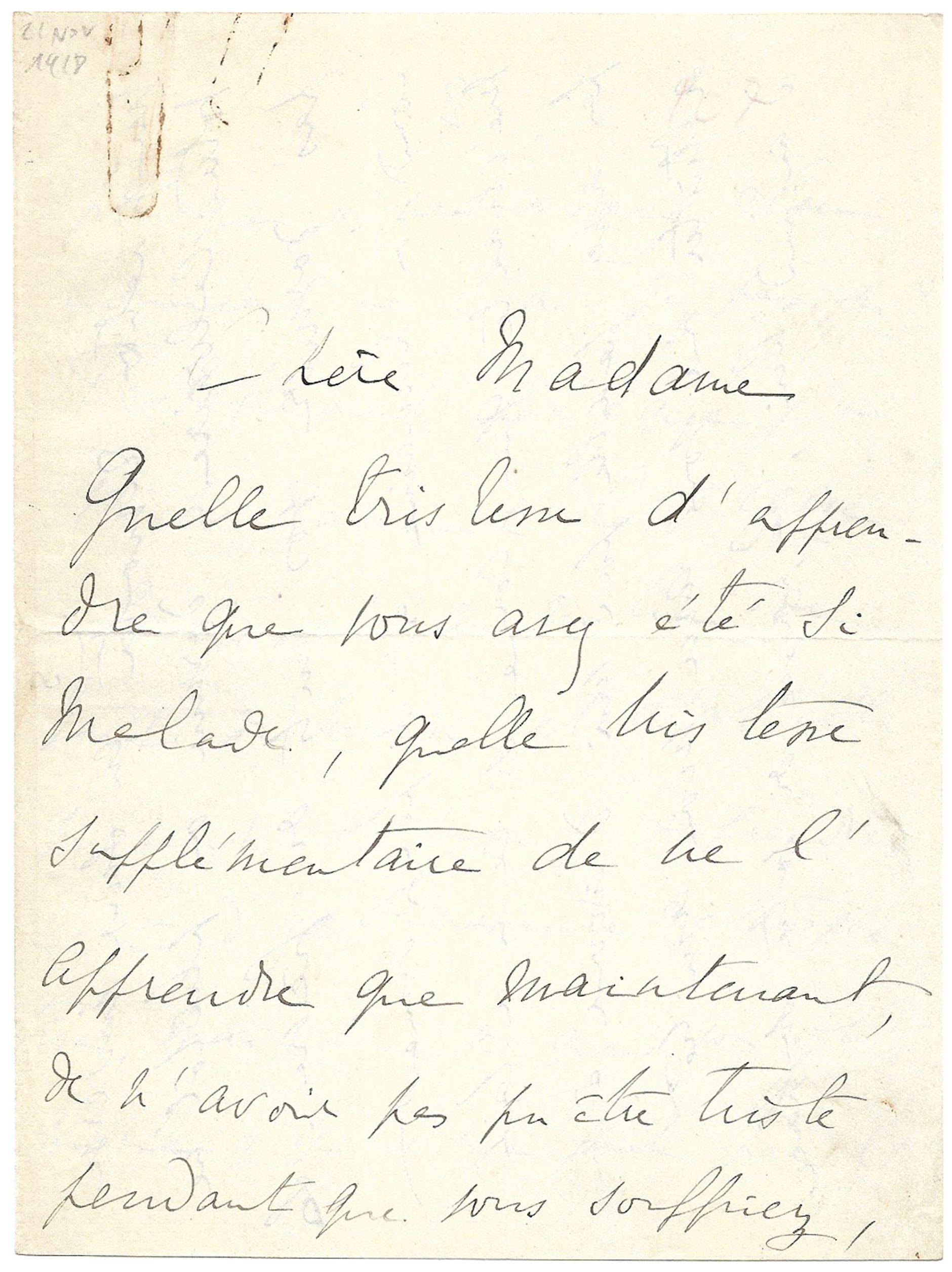Tout juste informé que Marie Scheikévitch a survécu à la grippe espagnole, Proust s’empresse d’écrire à celle qui jadis l’aida pour la publication de Du Côté de chez Swann