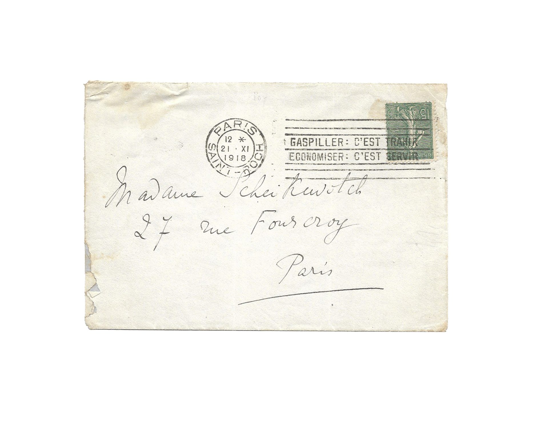 [Paris, 21 novembre 1918], 4 p. in-8° avec enveloppe autographe