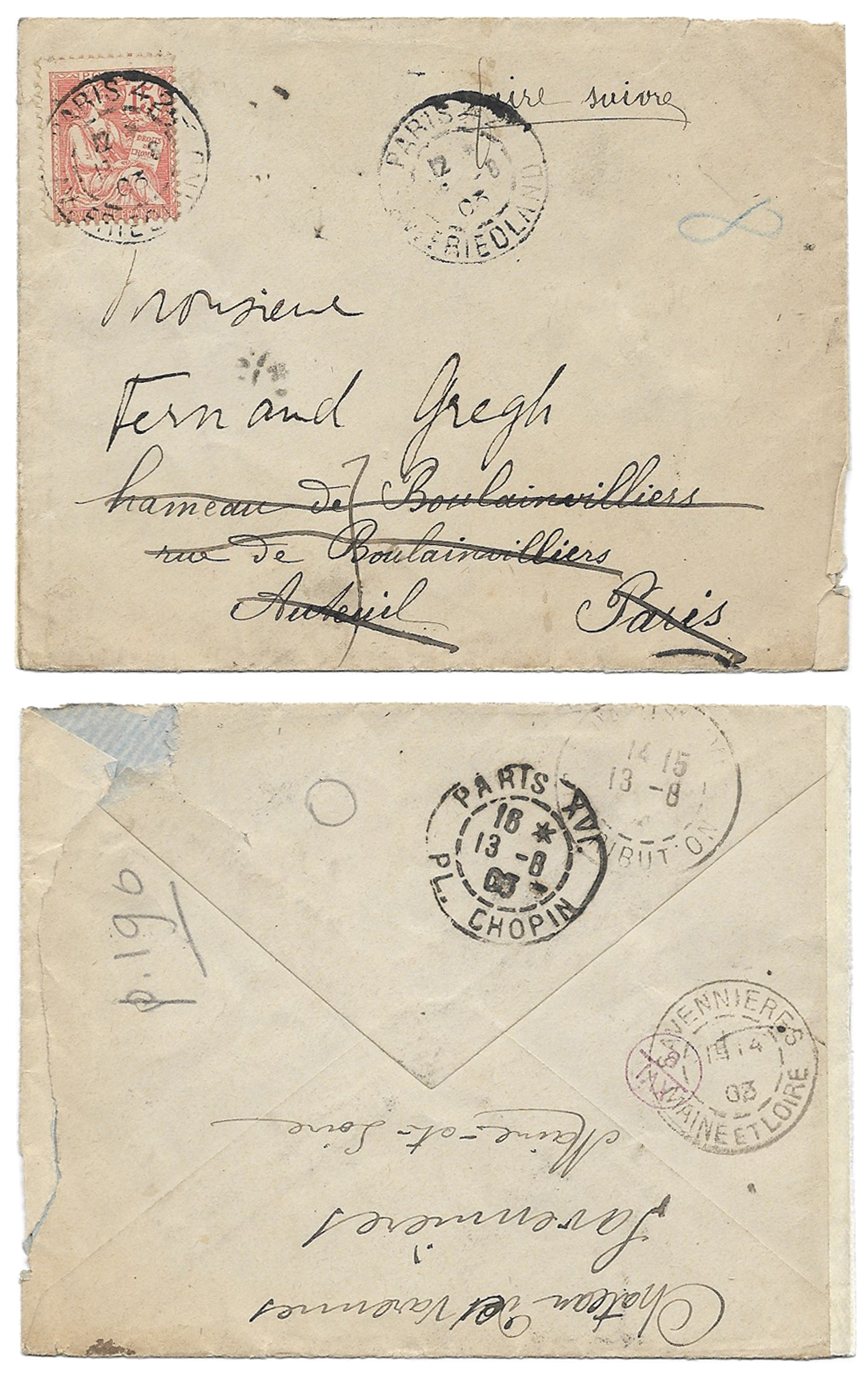 S.l.n.d., [Paris, 13 août 1903], 3 p. petit in-8° à l’encre noire