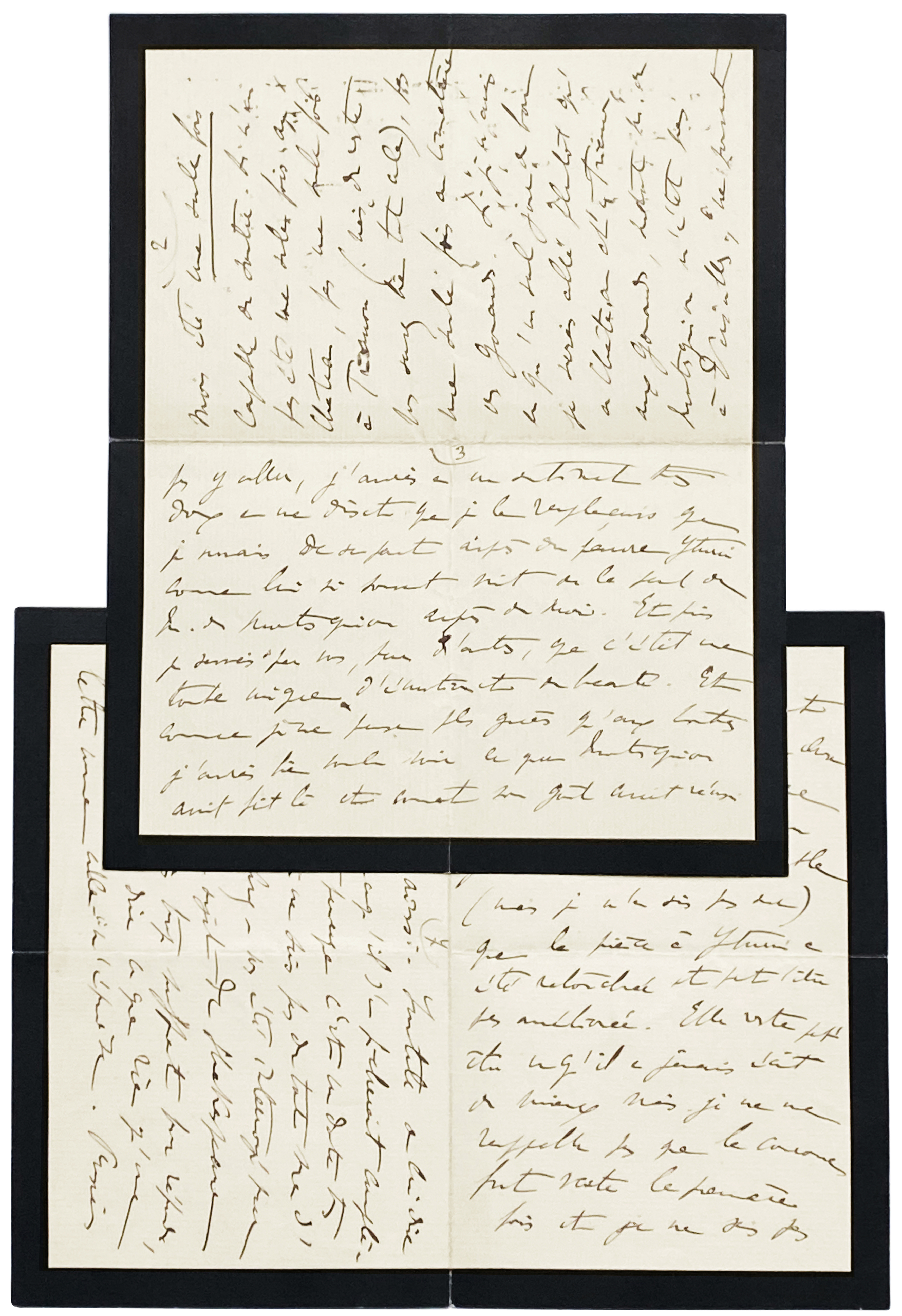 S.l.n.d « Lundi » [7 janvier 1907]1, 8 pp. in-8° sur deux bifeuillets, écrite recto-verso à l’encre noire, papier de deuil, filigrané « L. T. & C° »