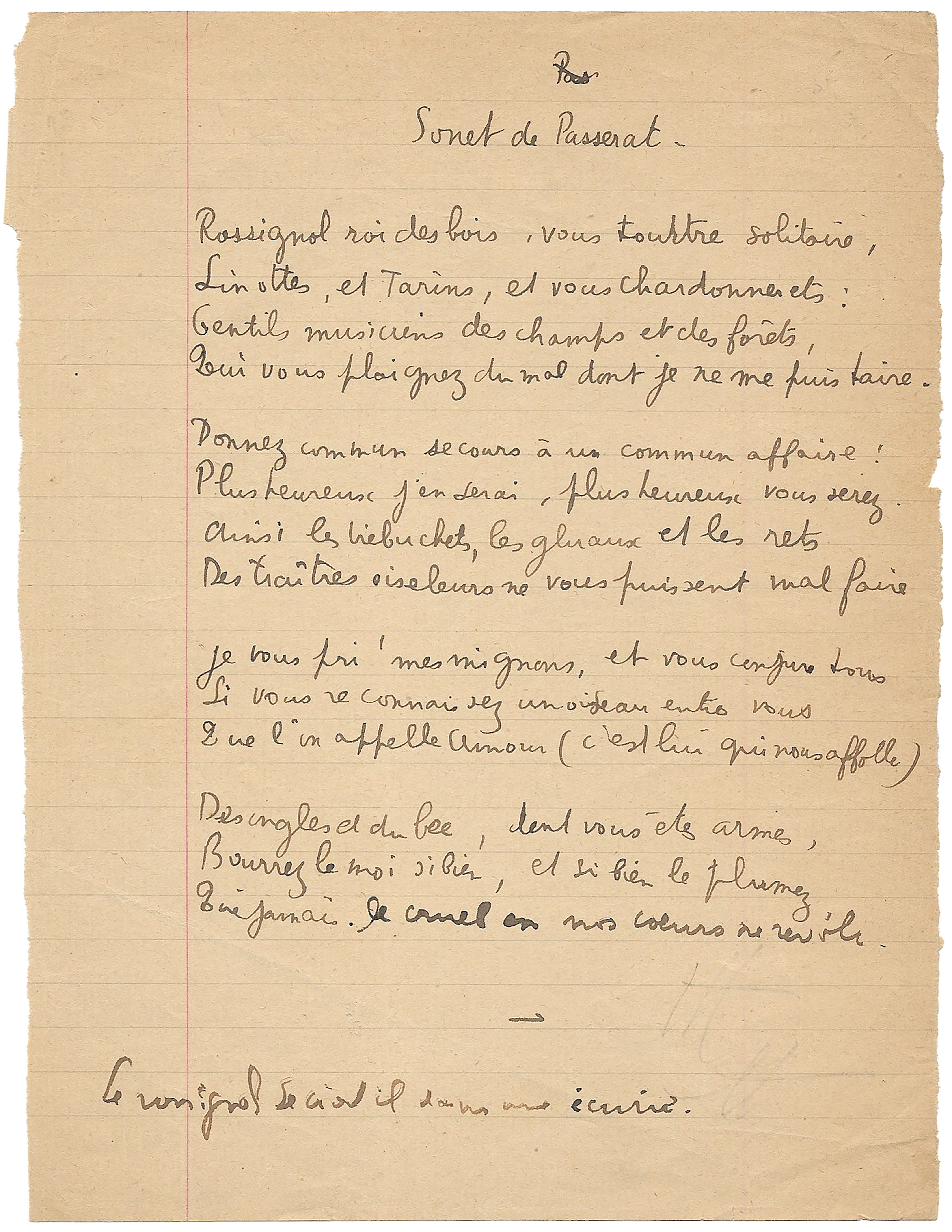 Radiguet commente ironiquement un sonnet de Passerat, qu’il recopie in extenso