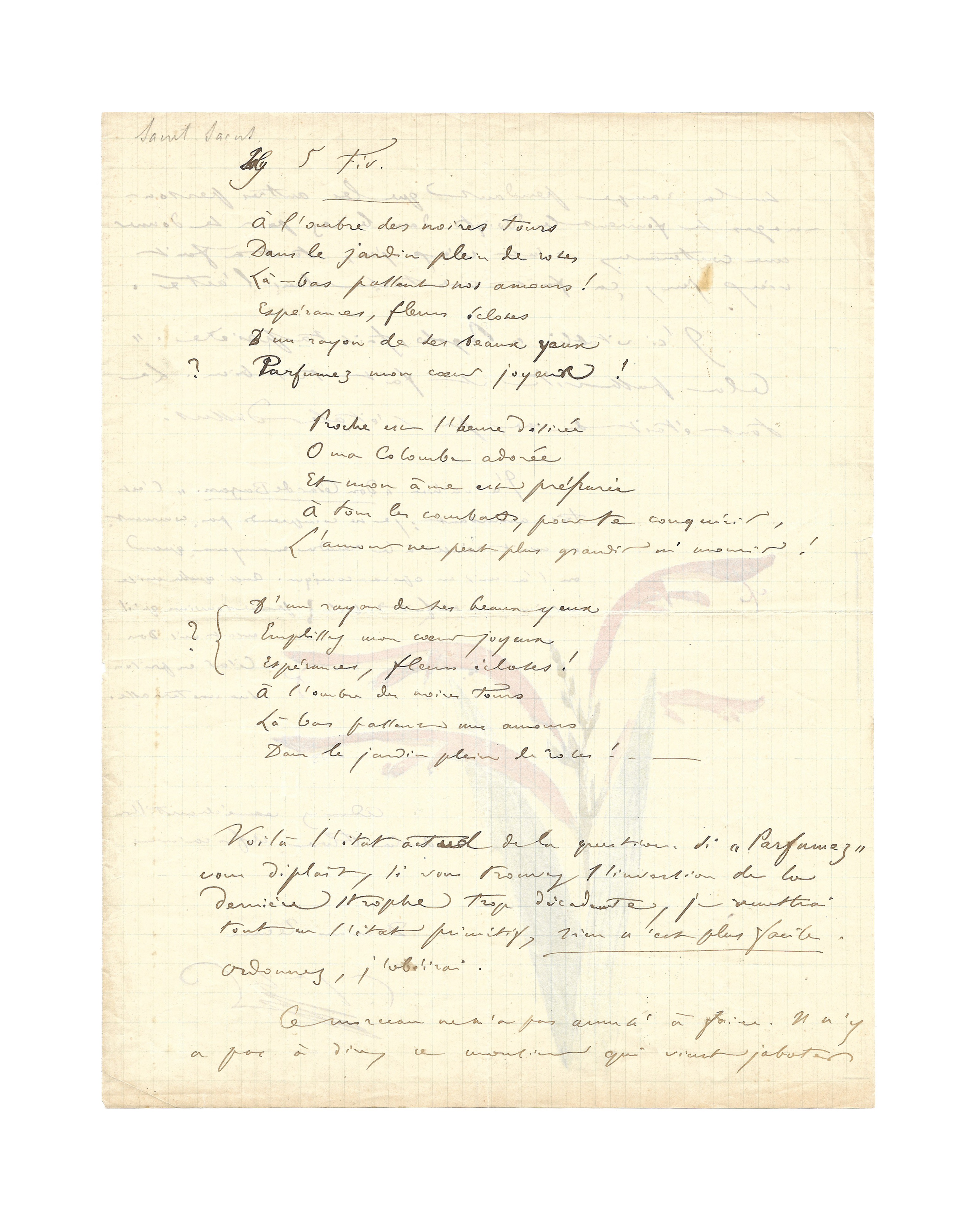 Voilà l’état actuel de la question, si « Parfumez » vous déplaît, si vous trouvez l’inversion de la dernière strophe trop décadente, je remettrai tout à l’état primitif, rien n’est plus facile.