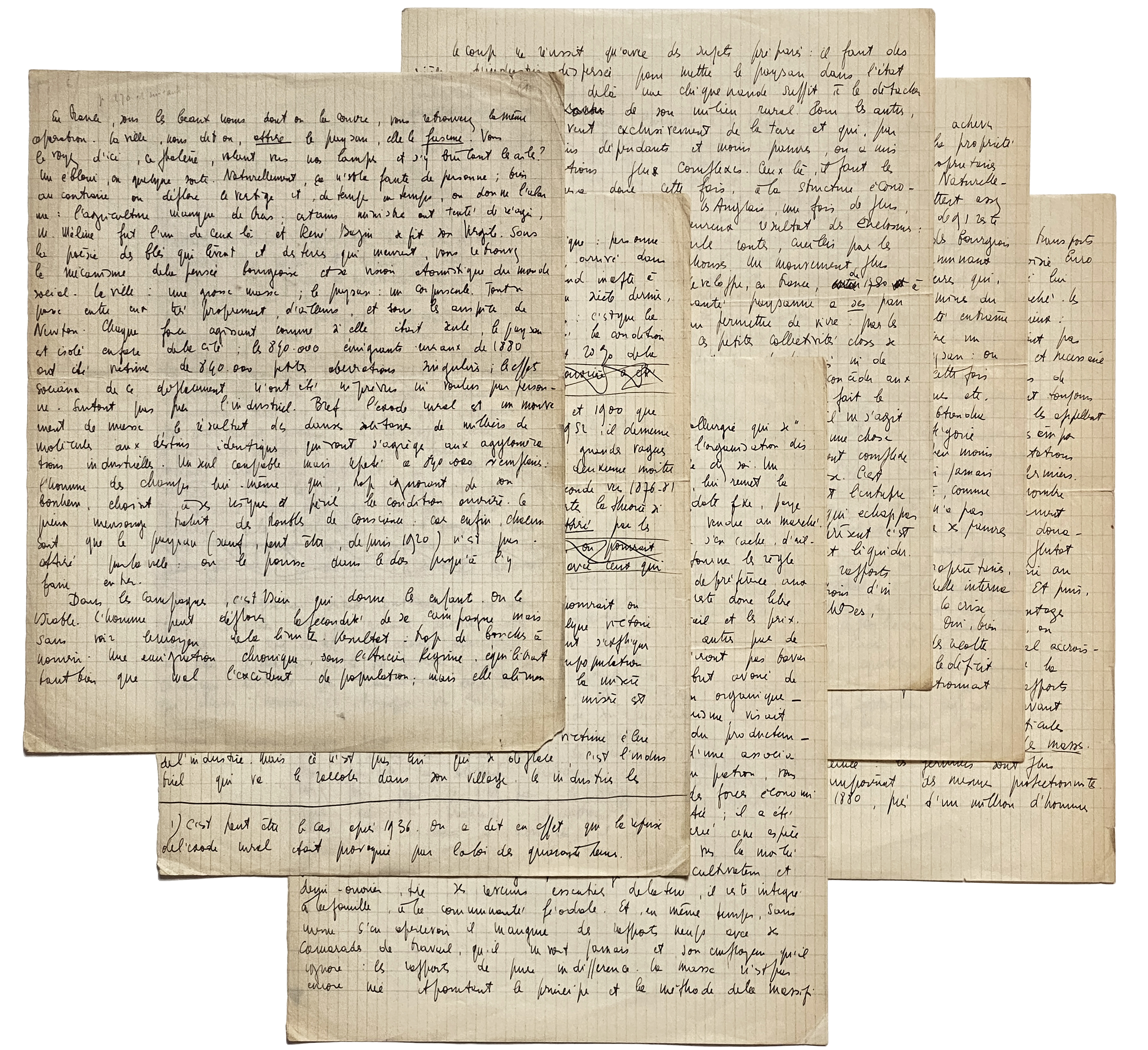 Important manuscrit préparatoire pour la troisième partie des « Communistes et la paix » – Sartre analyse en profondeur le monde paysan, l’histoire de l’exode rural et ses causes