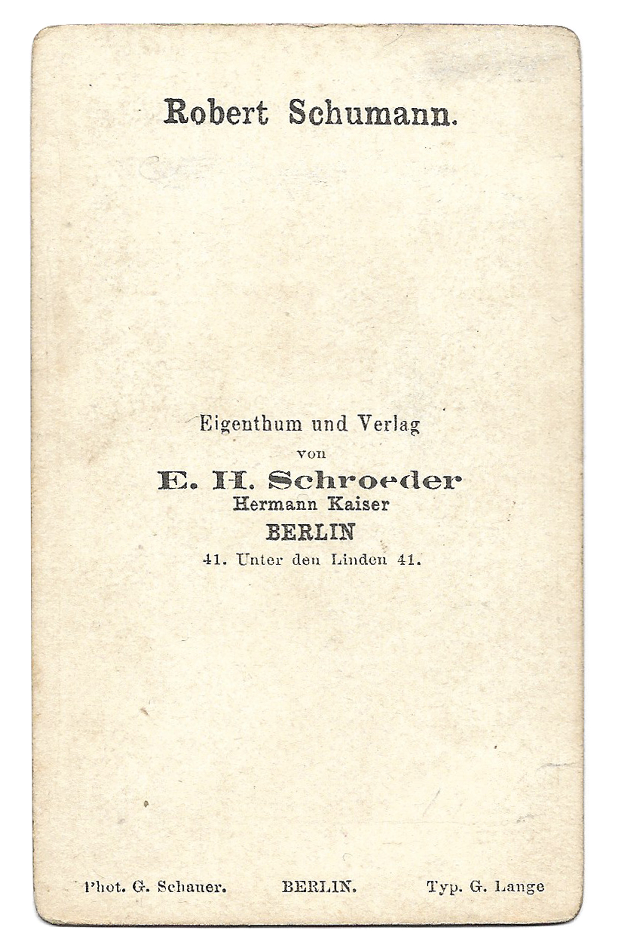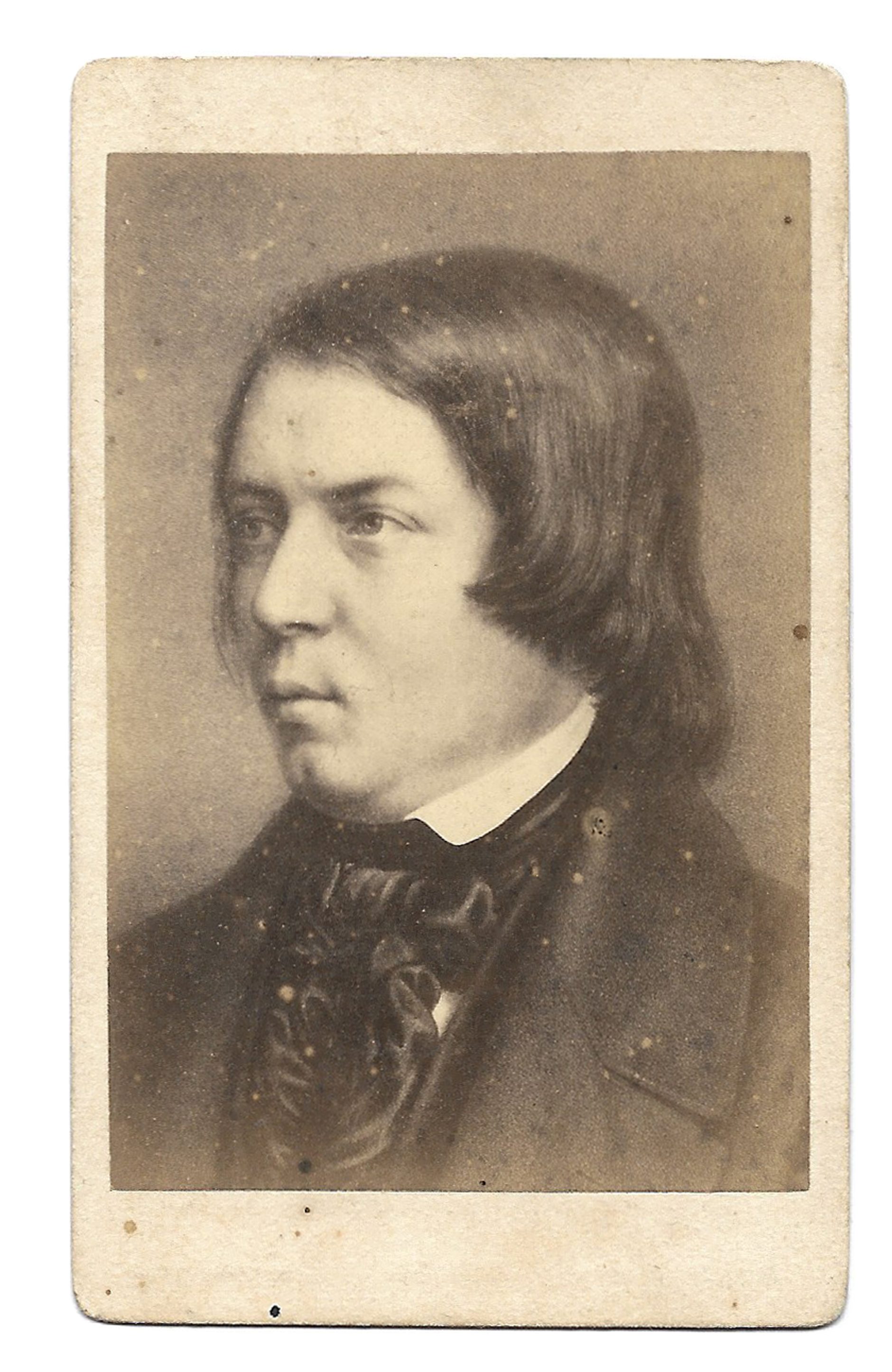 Un portrait de son mari le compositeur Robert Schumann (1810-1856) par E.H. Schroeder ; épreuve à partir d’un dessin ou d’une gravure.