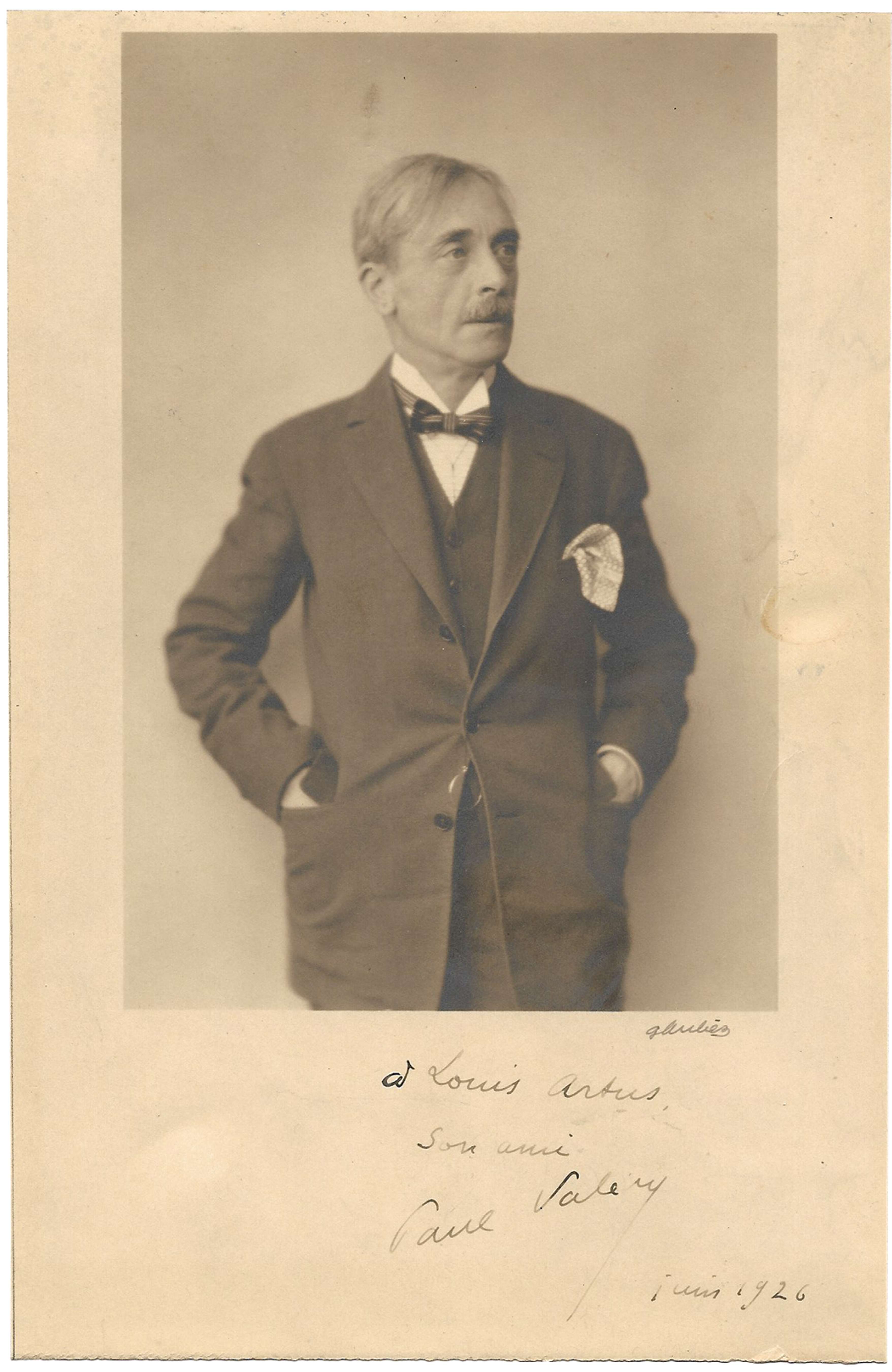 Tirage d’époque avec dédicace autographe signé « Paul Valéry » à Louis Artus