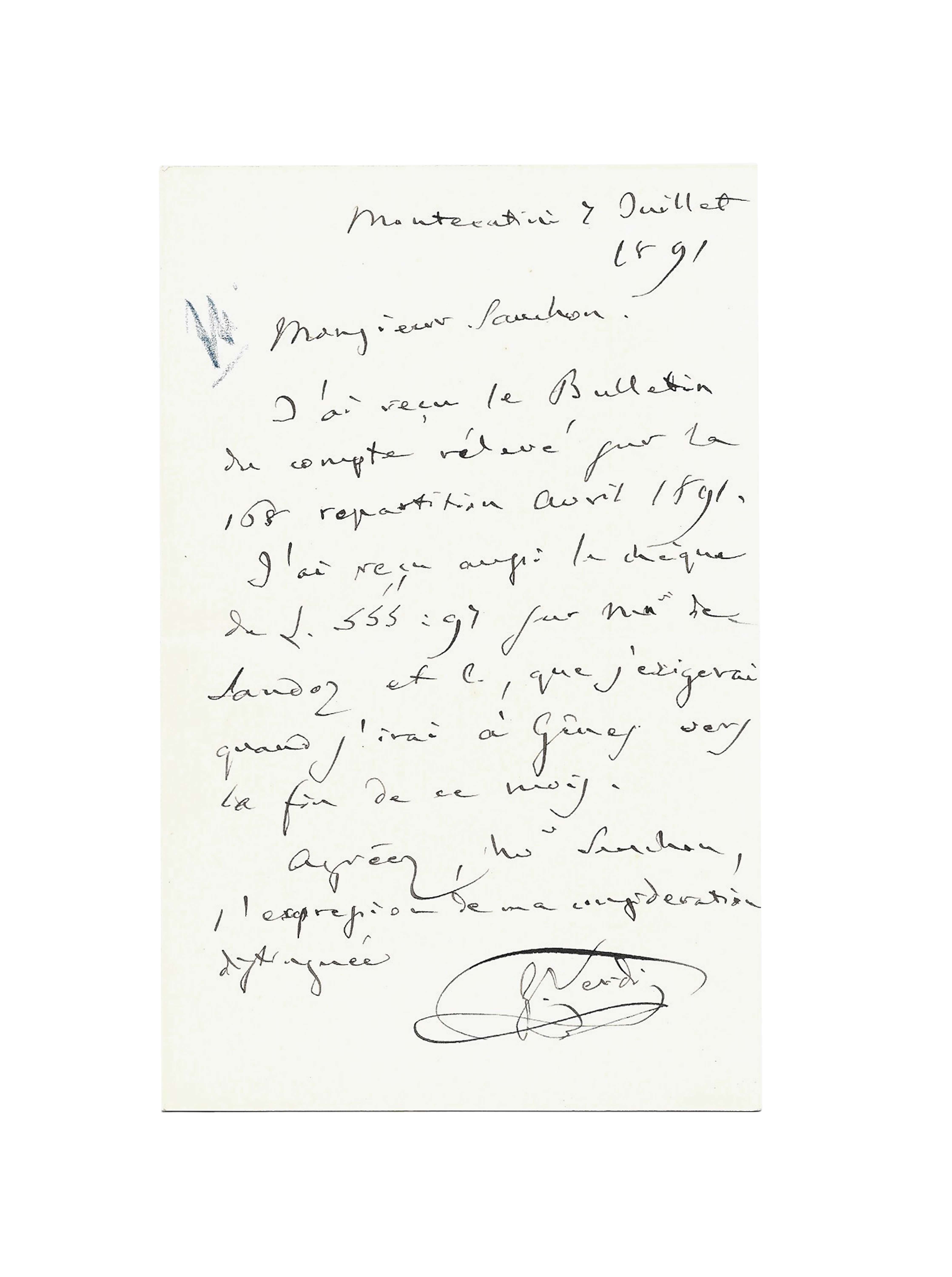Lettre autographe signée « GVerdi » à M. Sauchon