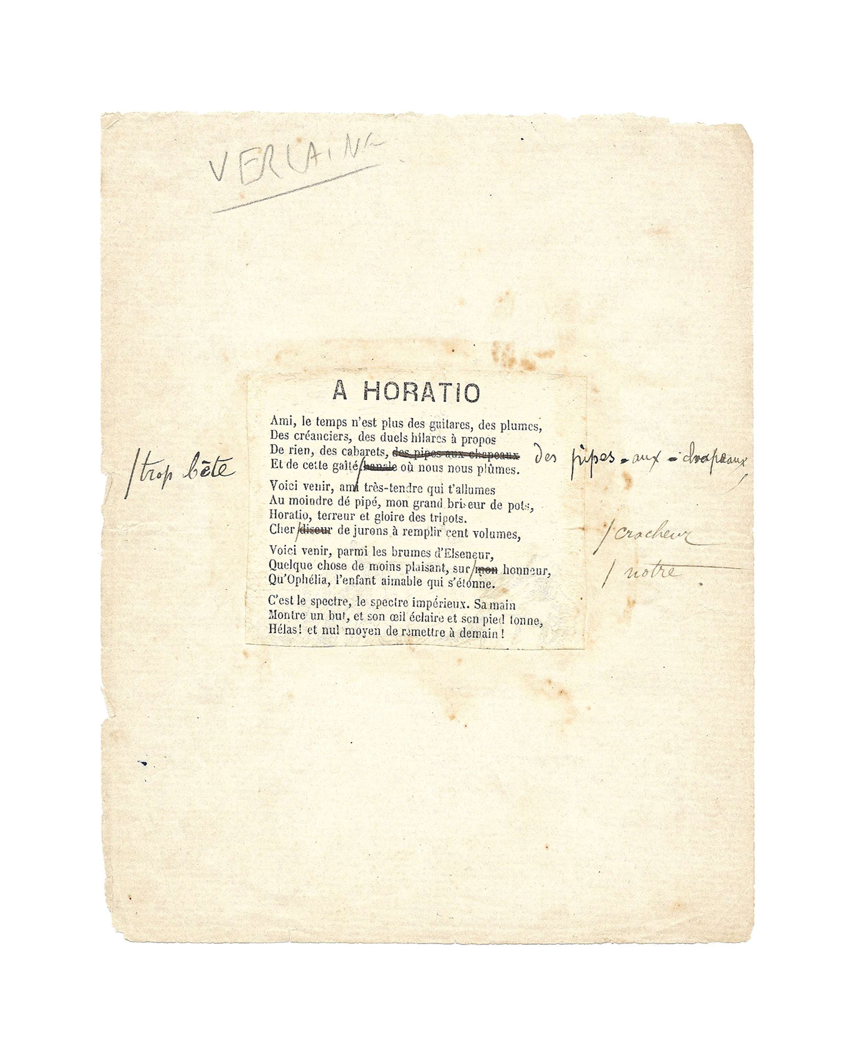 Poème imprimé avec corrections autographes, intitulé « À Horatio »