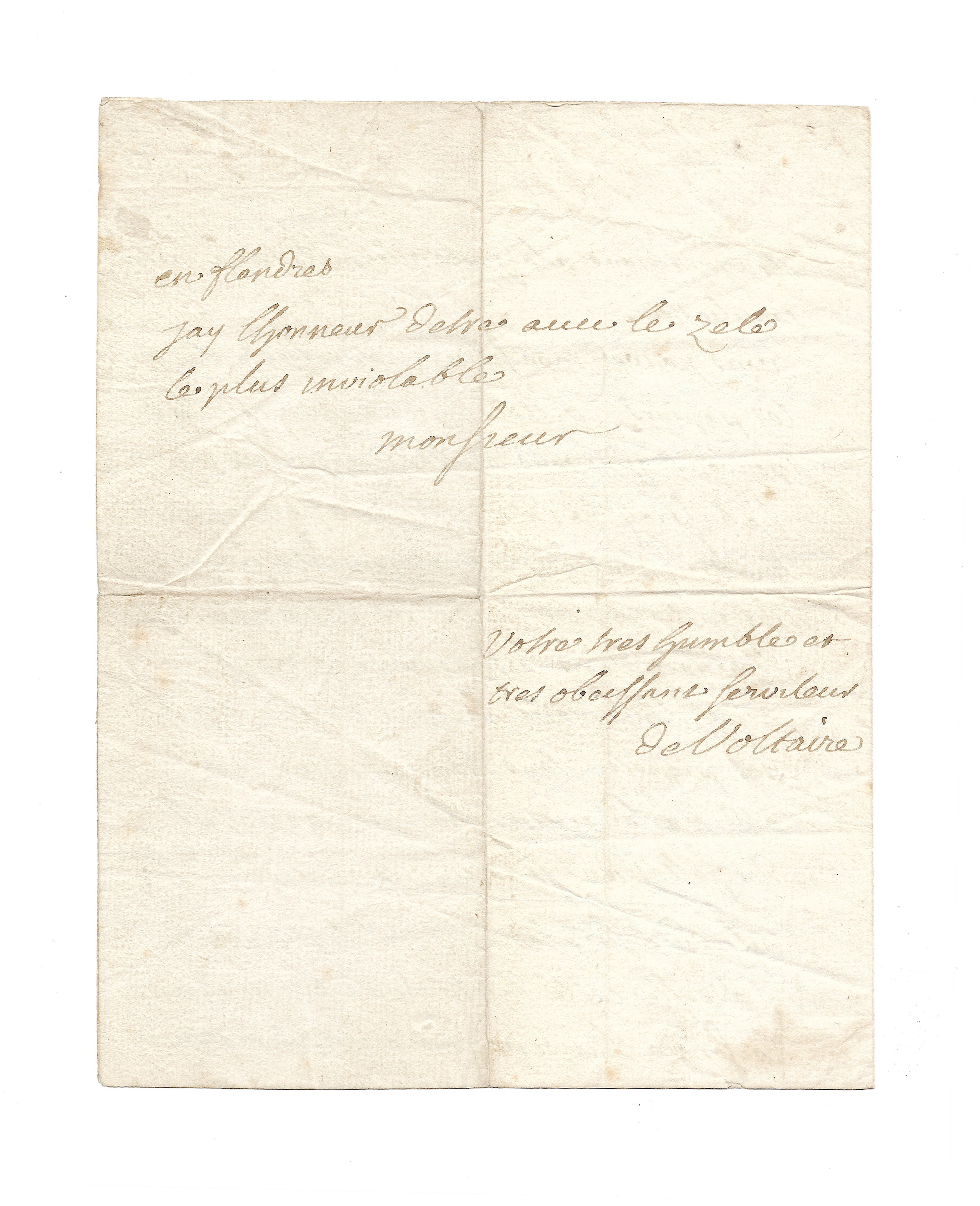 Lettre autographe signée « de Voltaire » à George-Conrad Walther