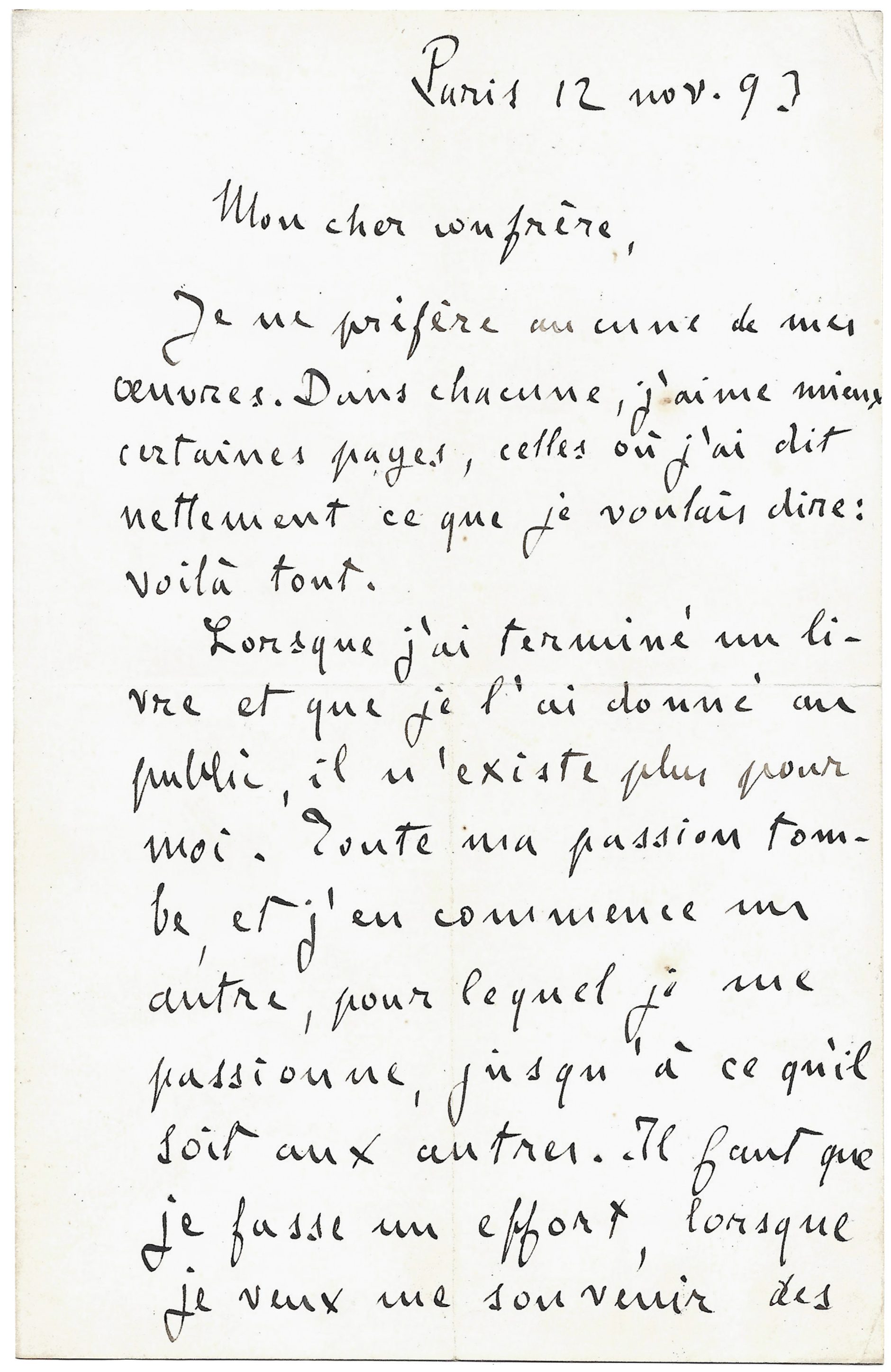 Paris, 12 novembre [18]93, 1 p. 1/2 in-8°