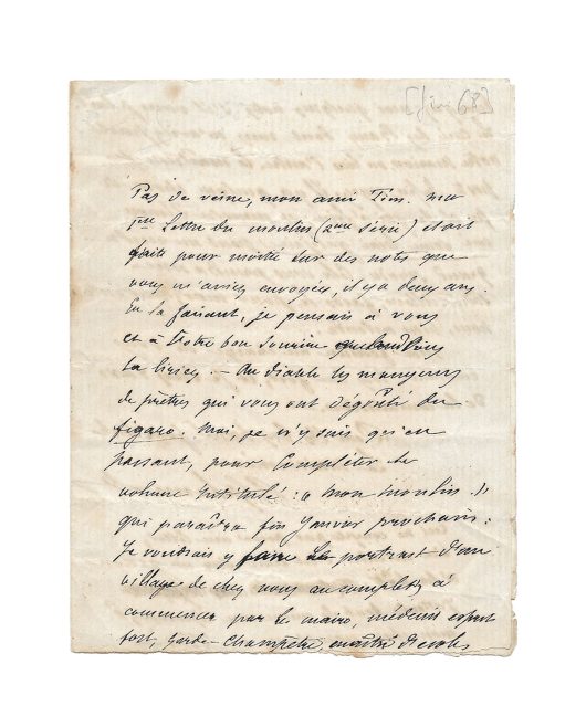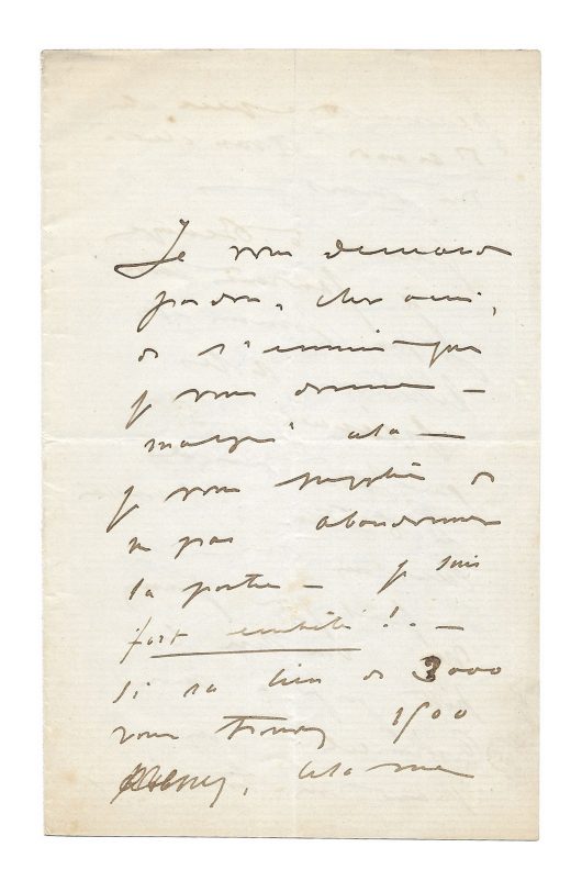 Lettre autographe signée « Degas » au collectionneur Montagnac