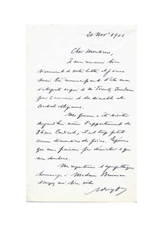 Paris, 5th February 1901, 1 p. n-8° on laid paper