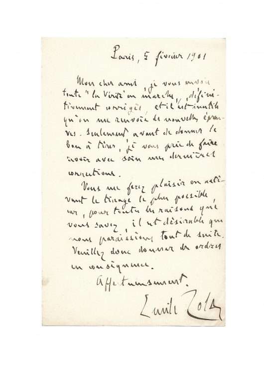 Autograph letter signed « Émile Zola » [to his publisher Eugène Fasquelle]
