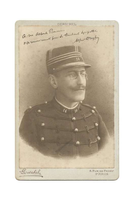 Scarce autographed portrait of Captain Dreyfus in artilleryman’s uniform