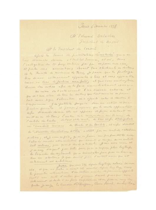 Autograph letter signed three times to President Édouard Daladier