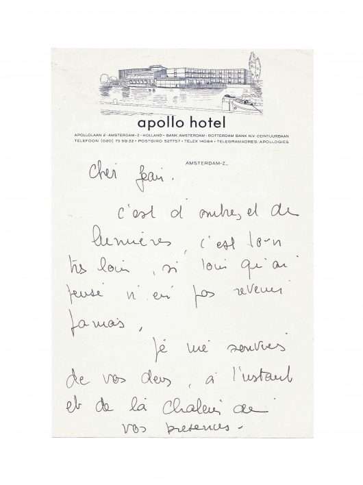 N.p.n.d [Amsterdam, c. 1976], 1 p. 1/2 in-8°, Apollo Hotel letterhead