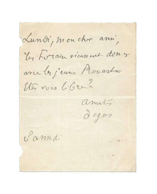 Autrograph card-letter signed « Degas » to Albert Bartholomé