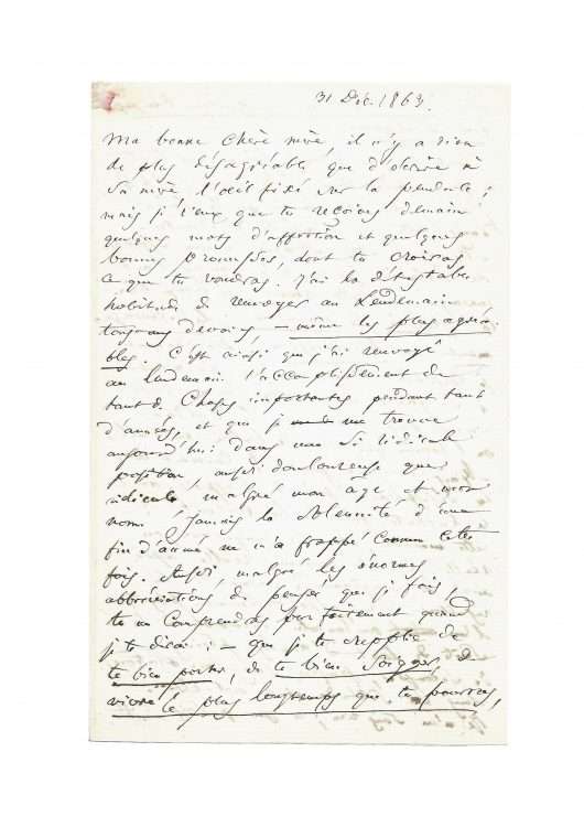 [Paris] 31st December 1863, 4 pp. in-8, additional post-scriptum attached