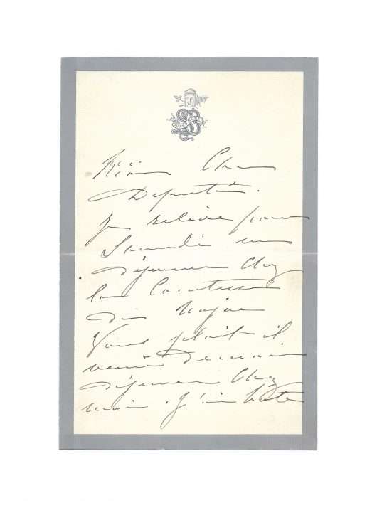 Autograph letter signed “Sarah Bernhardt” à un deputy