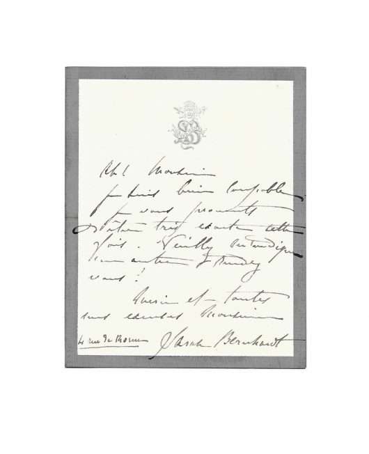 Autograph letter signed “Sarah Bernhardt” to a Monsieur