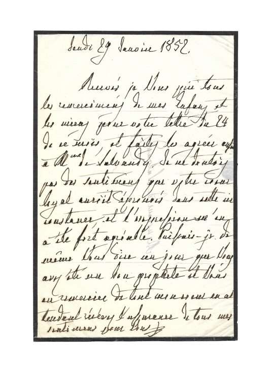 Claremont [United-Kingdom], 3 Sept. 1857, 1 p. 1/4 in-8° on mourning stationary