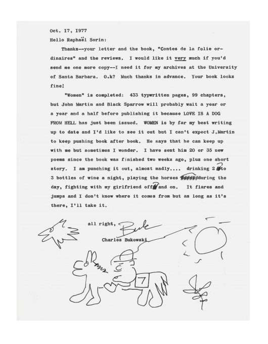 « I am punching it out, almost madly… drinking 2 to 3 bottles of wine a night, playing the horses during the day, fighting with my girlfriend off and on »