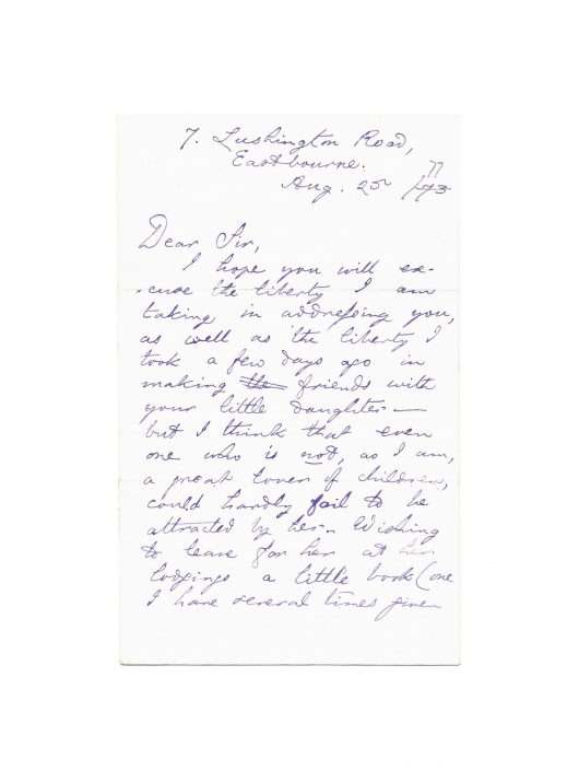 « I hope you will excuse the liberty… I took a few days ago in making friends with your little daughter »